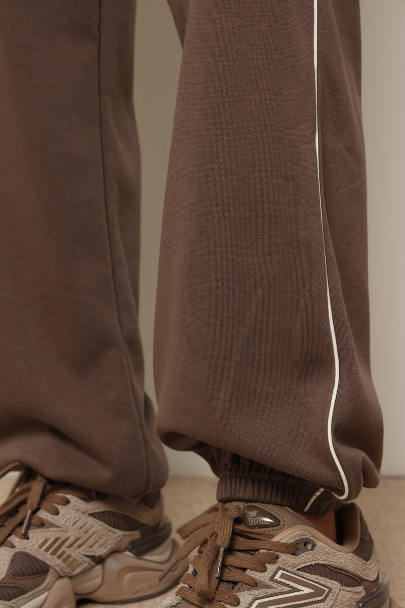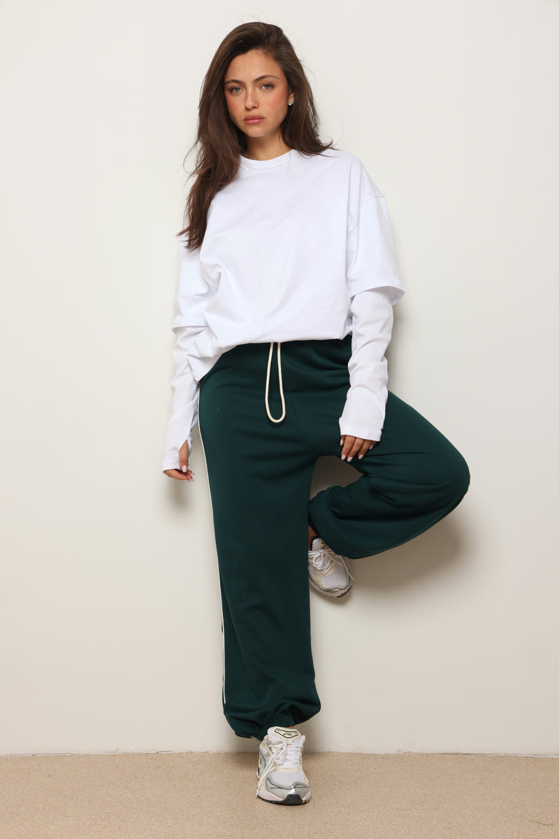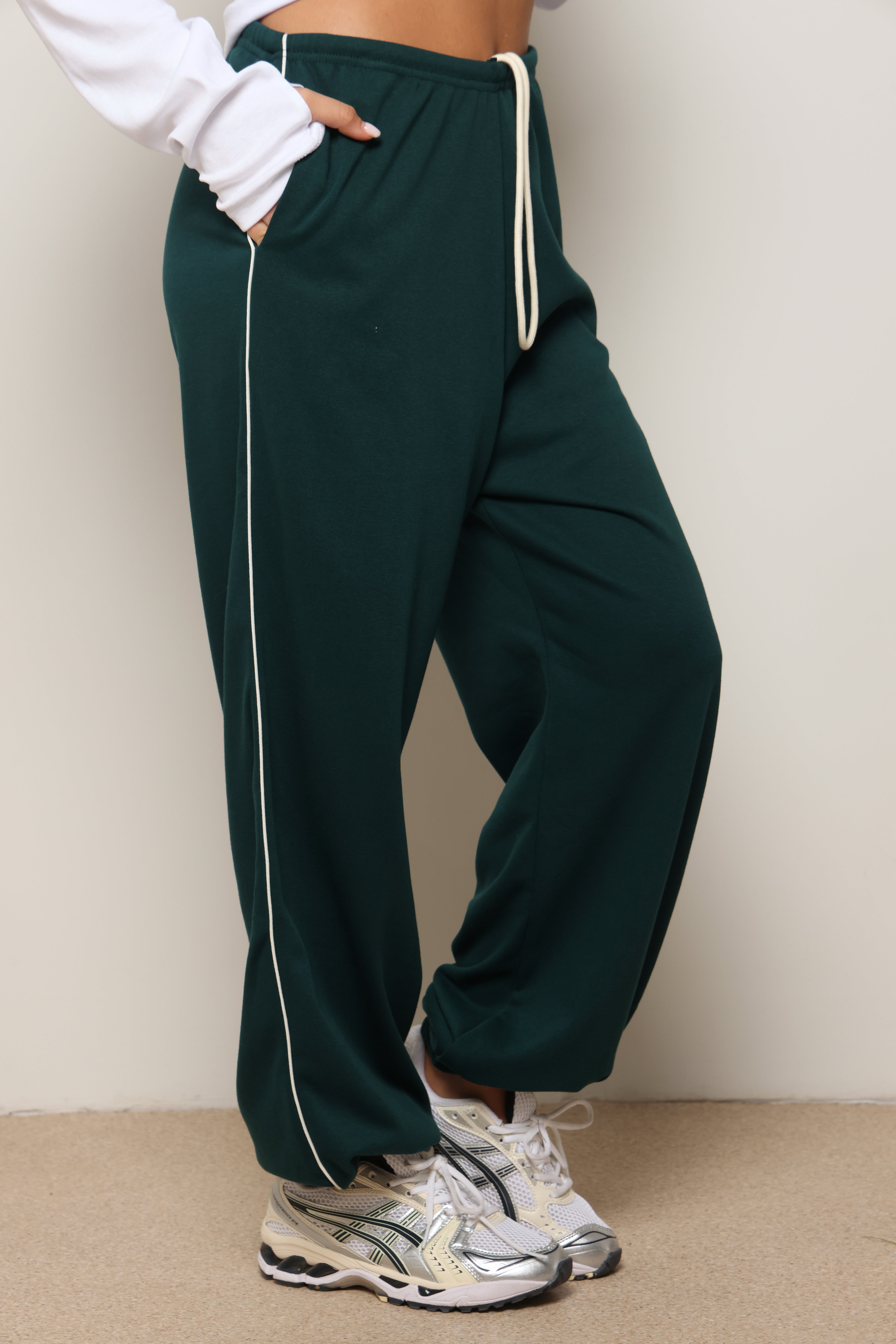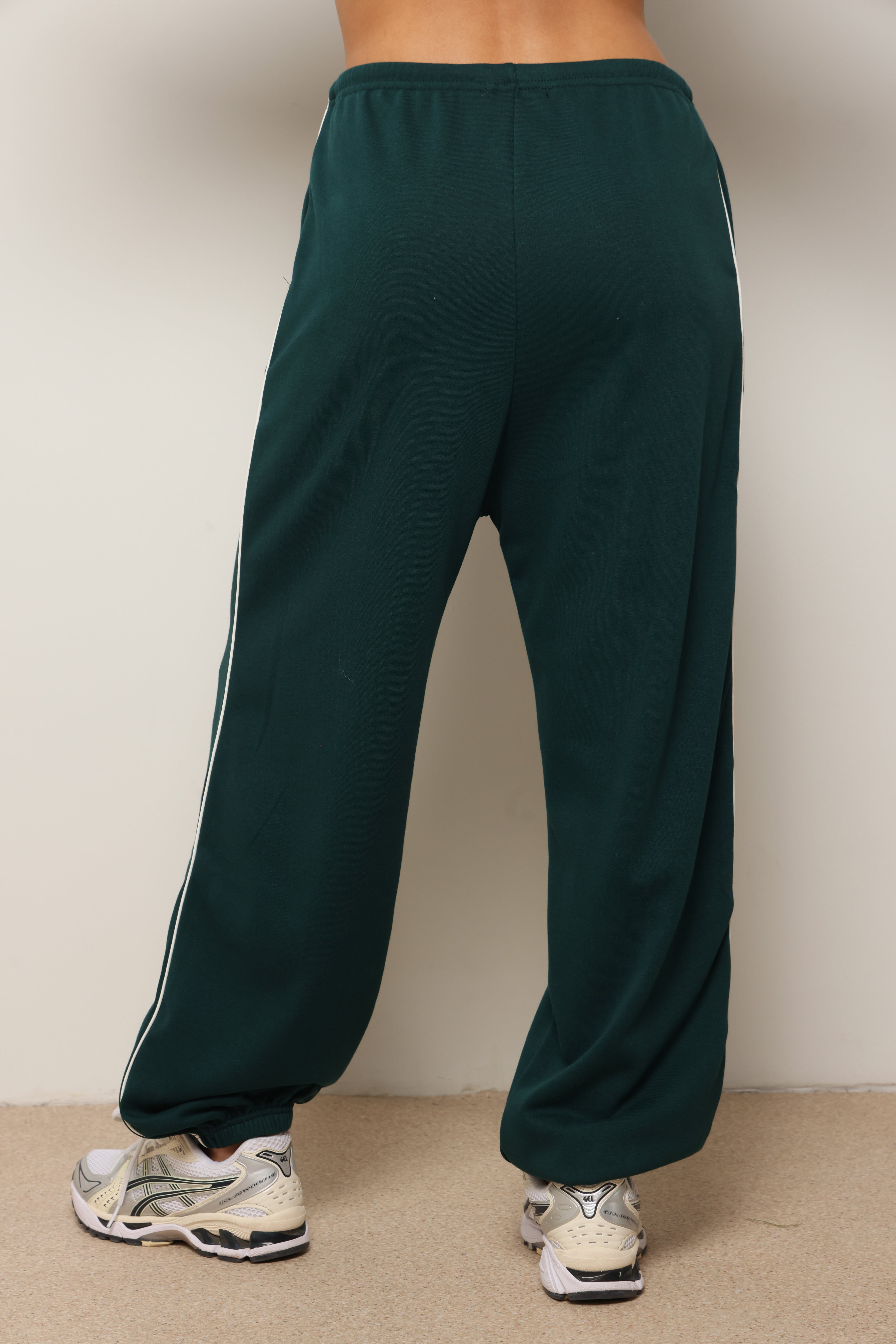 מכנסיים מבד פרנצ'טרי עם פס לאורך ושרוך קשירה.