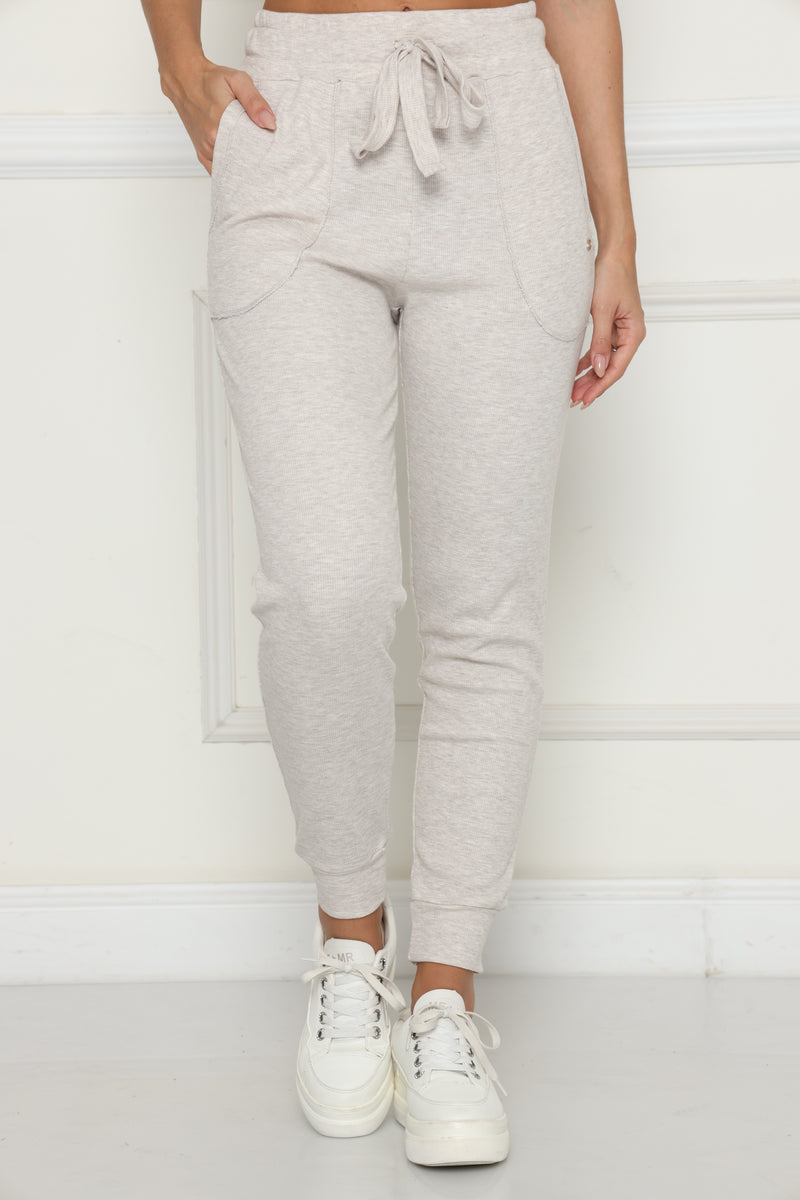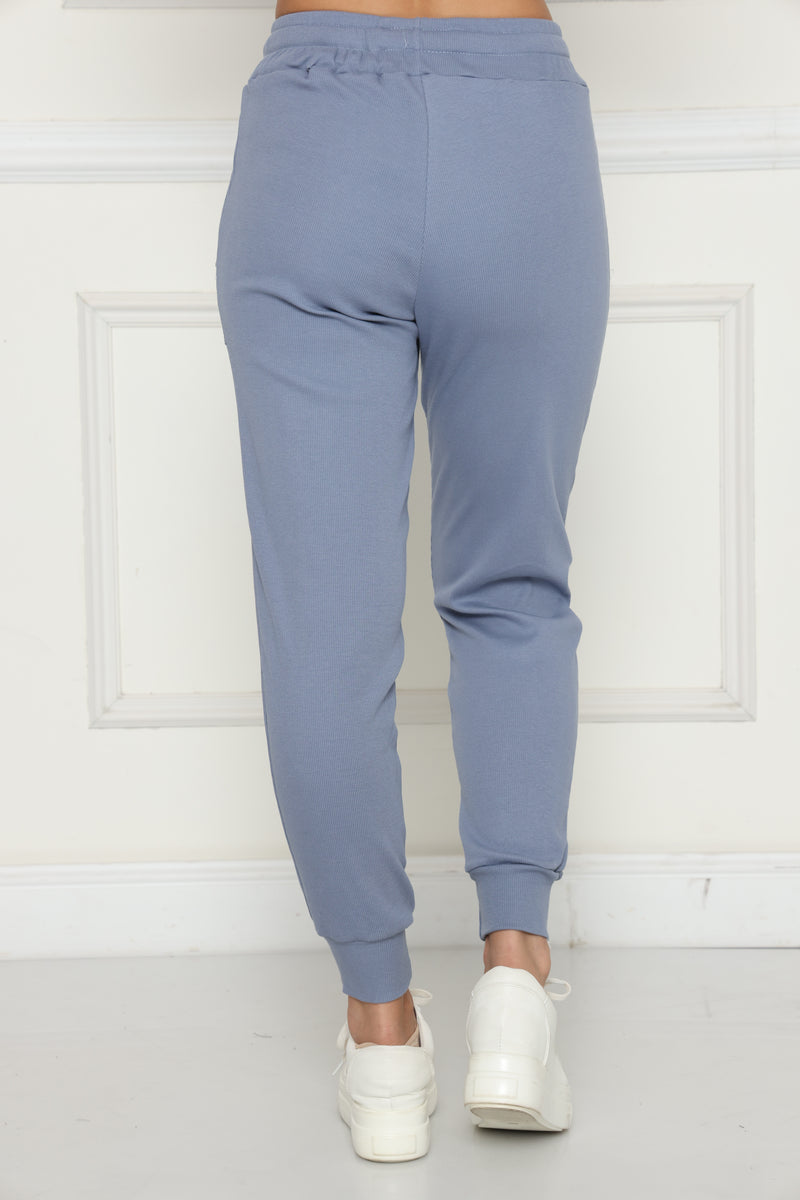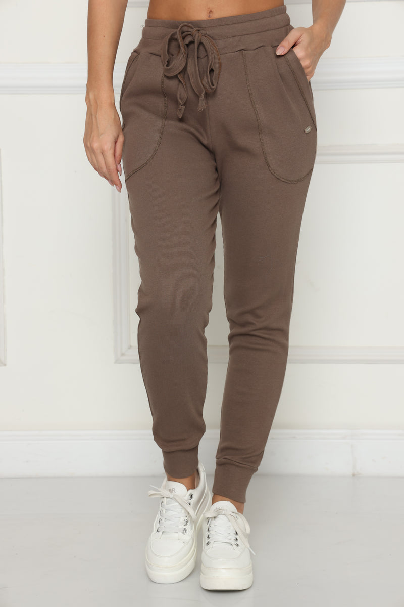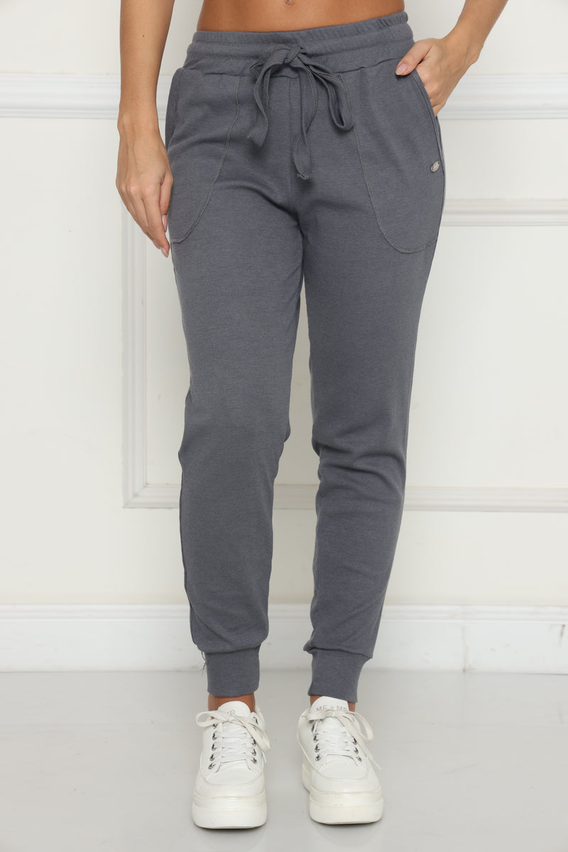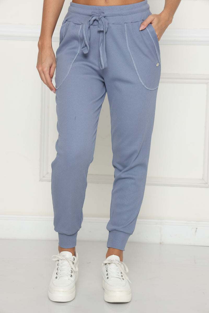 מכנסי קזואל מבד ריב כותנה עם לייקרה, המכנסיים בעלי גומי במותן,שרוך קשירה וכיסים צידיים.