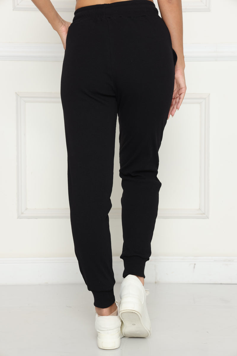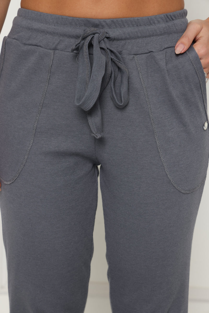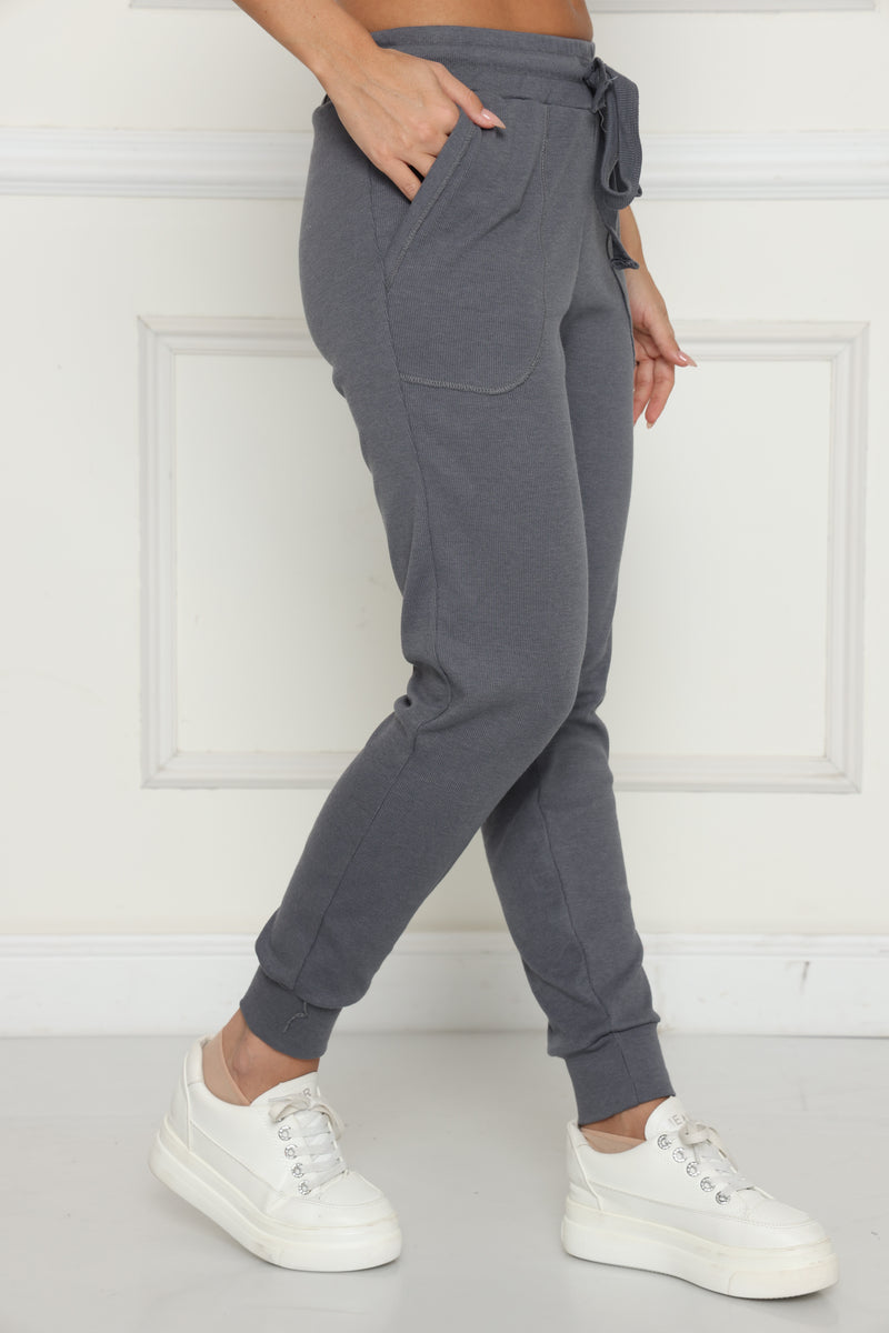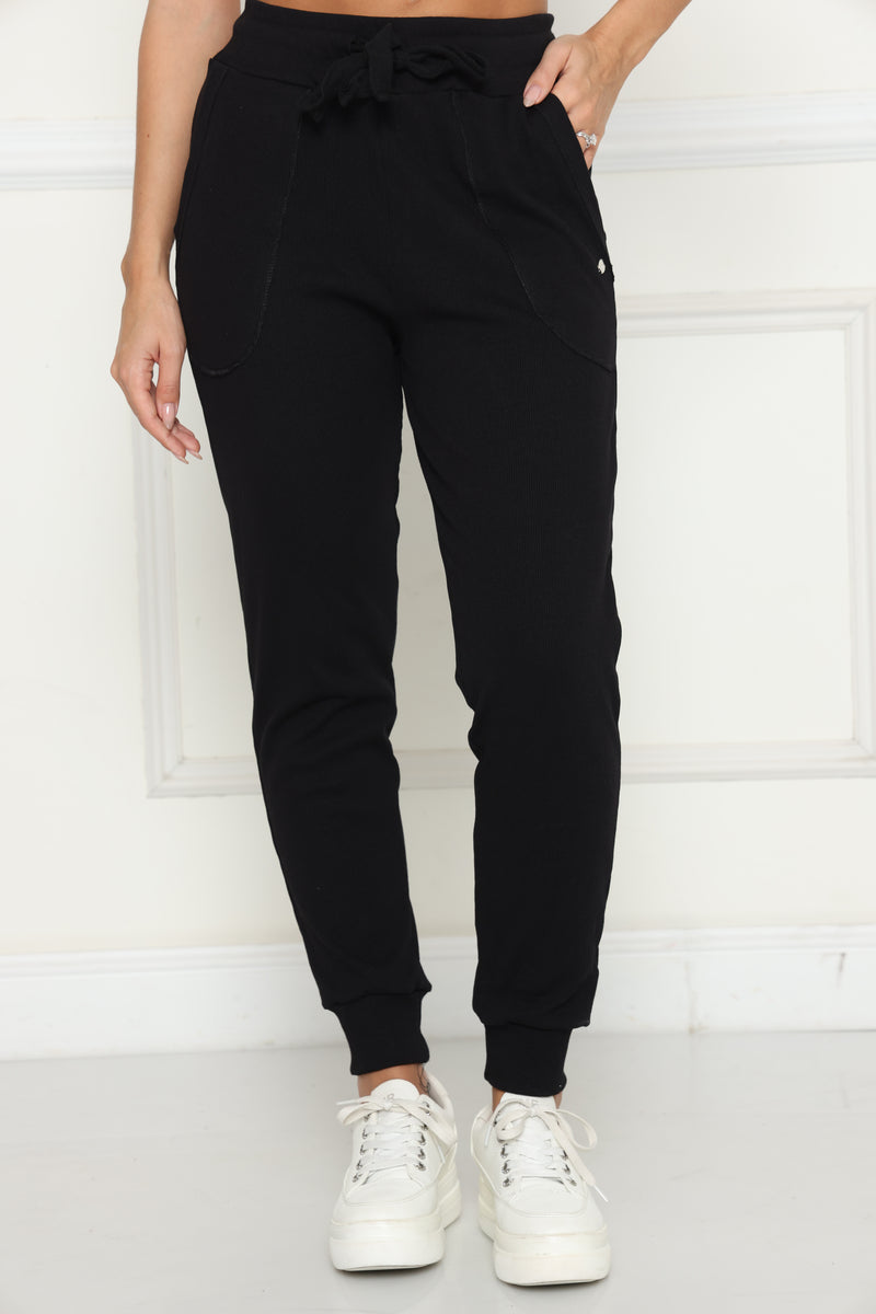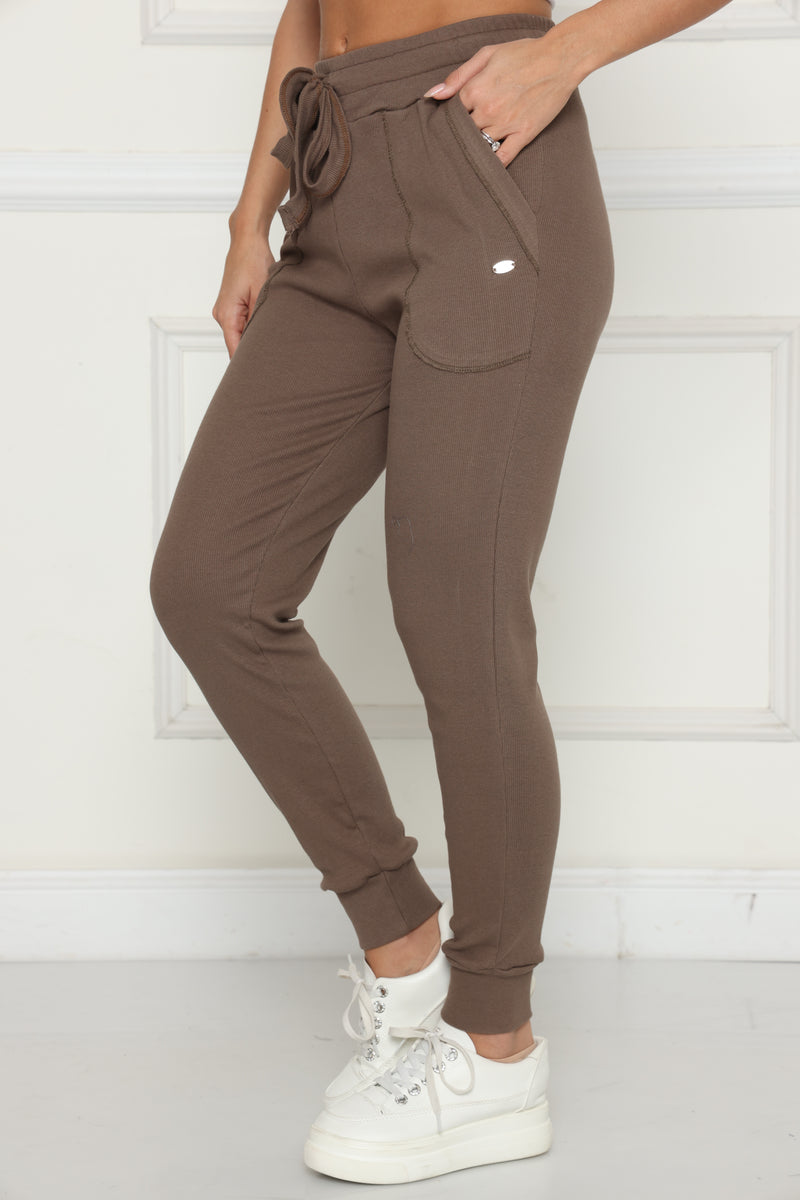 מכנסי קזואל מבד ריב כותנה עם לייקרה, המכנסיים בעלי גומי במותן,שרוך קשירה וכיסים צידיים.
