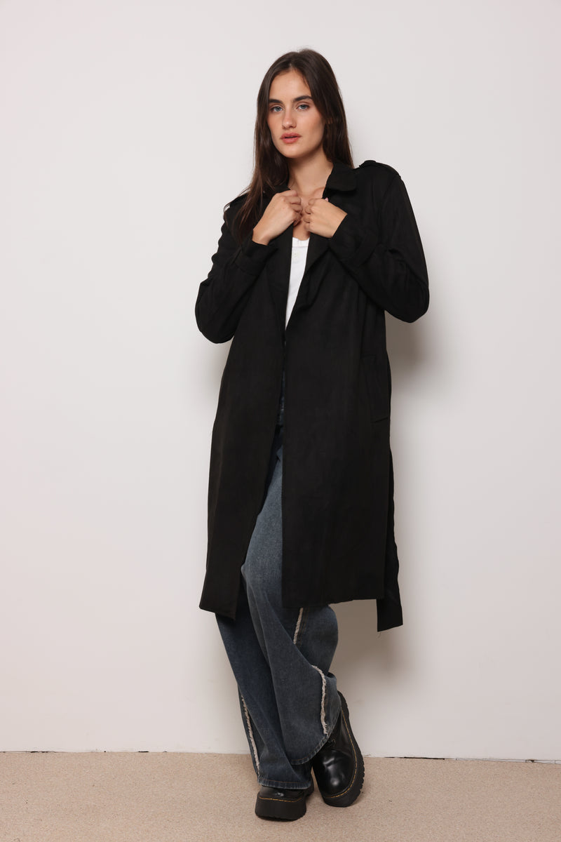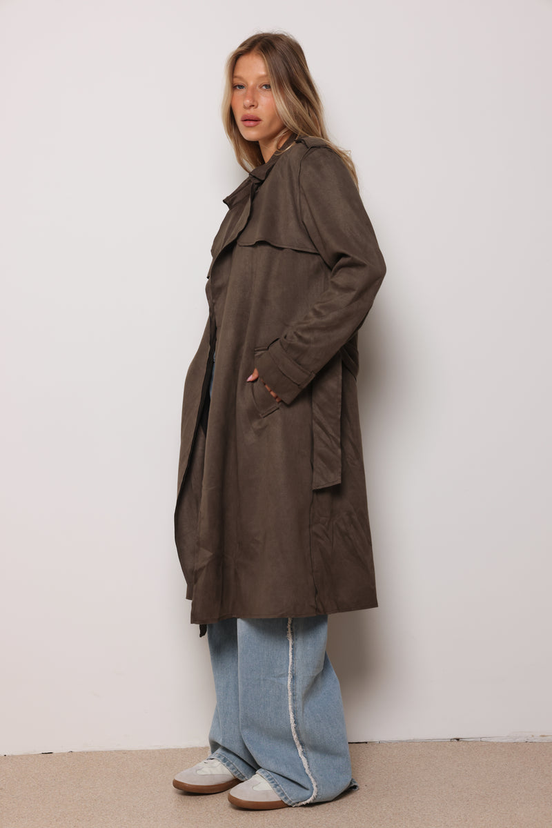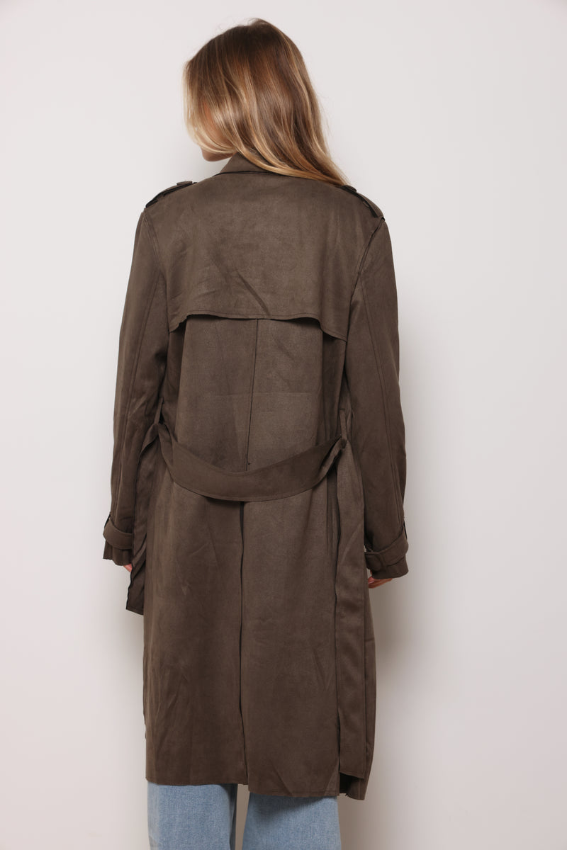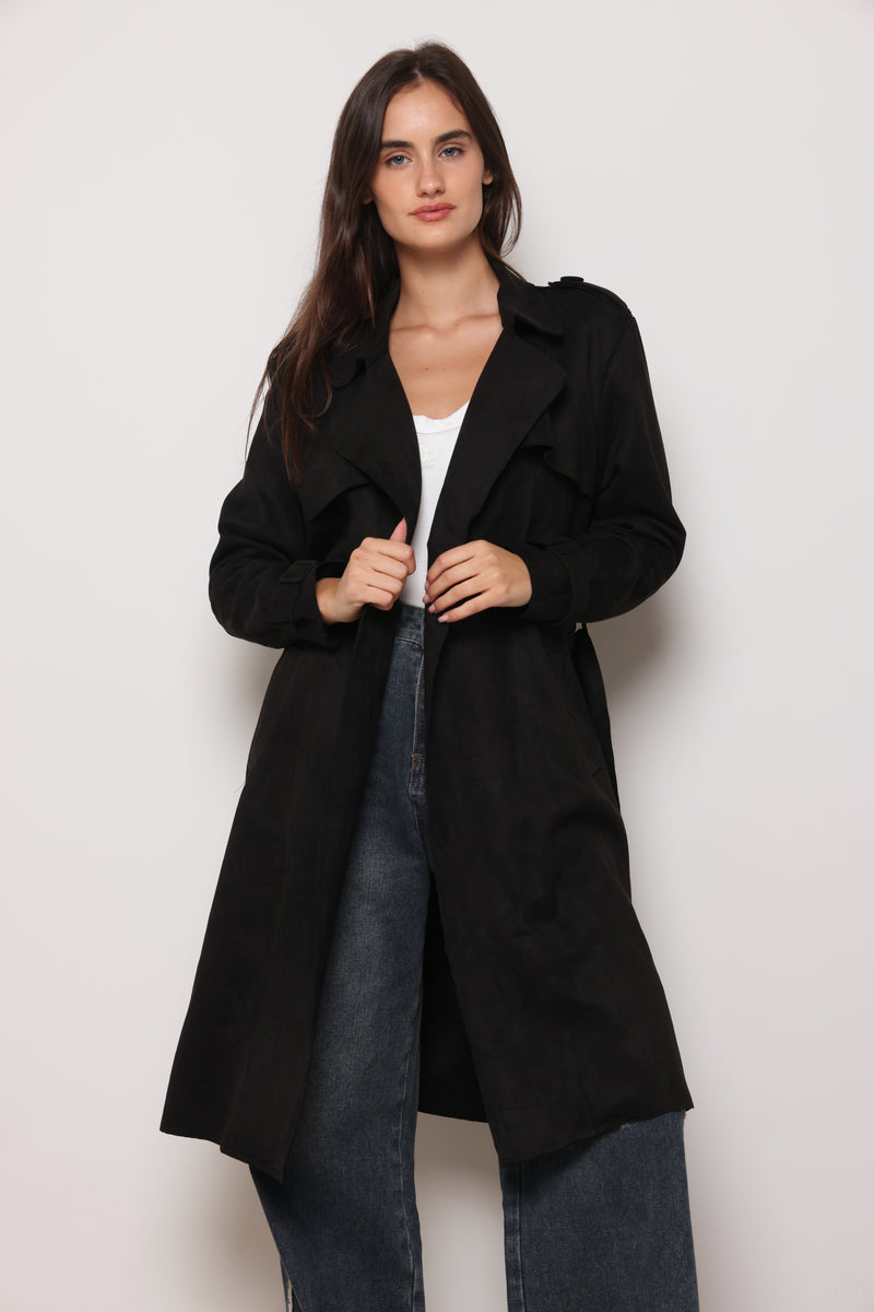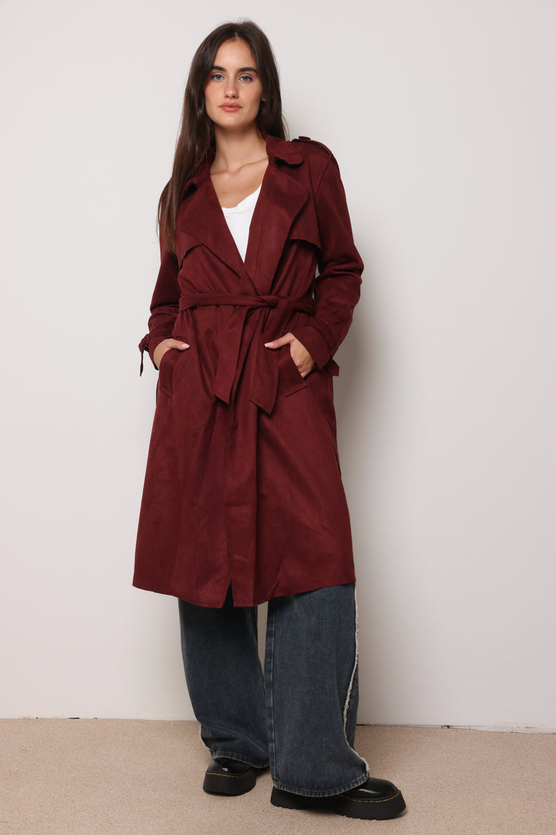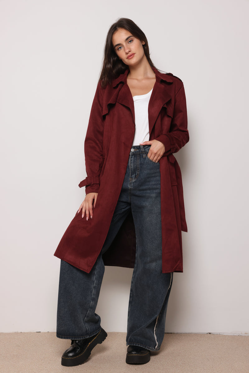 מעיל טראנץ׳ היסטרי בגזרה מעט אוברסייזית , צווארון וחגורת קשירה.