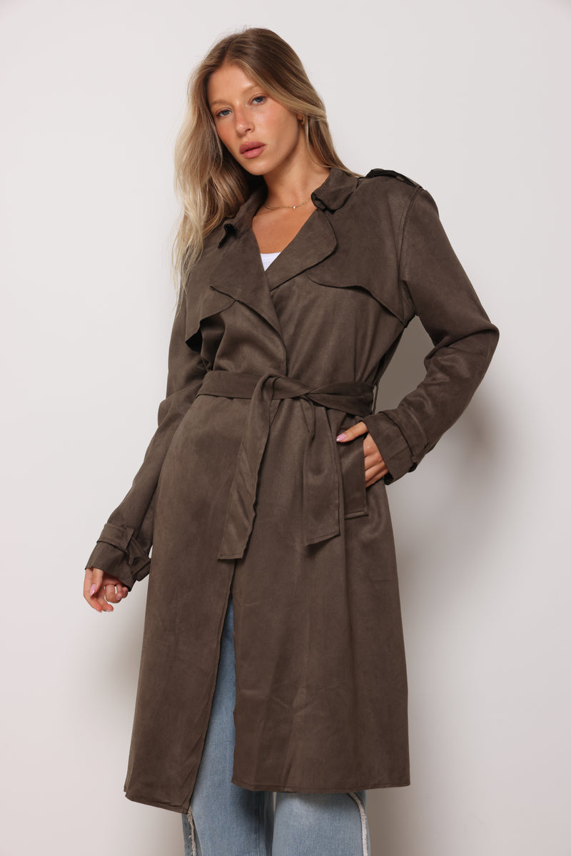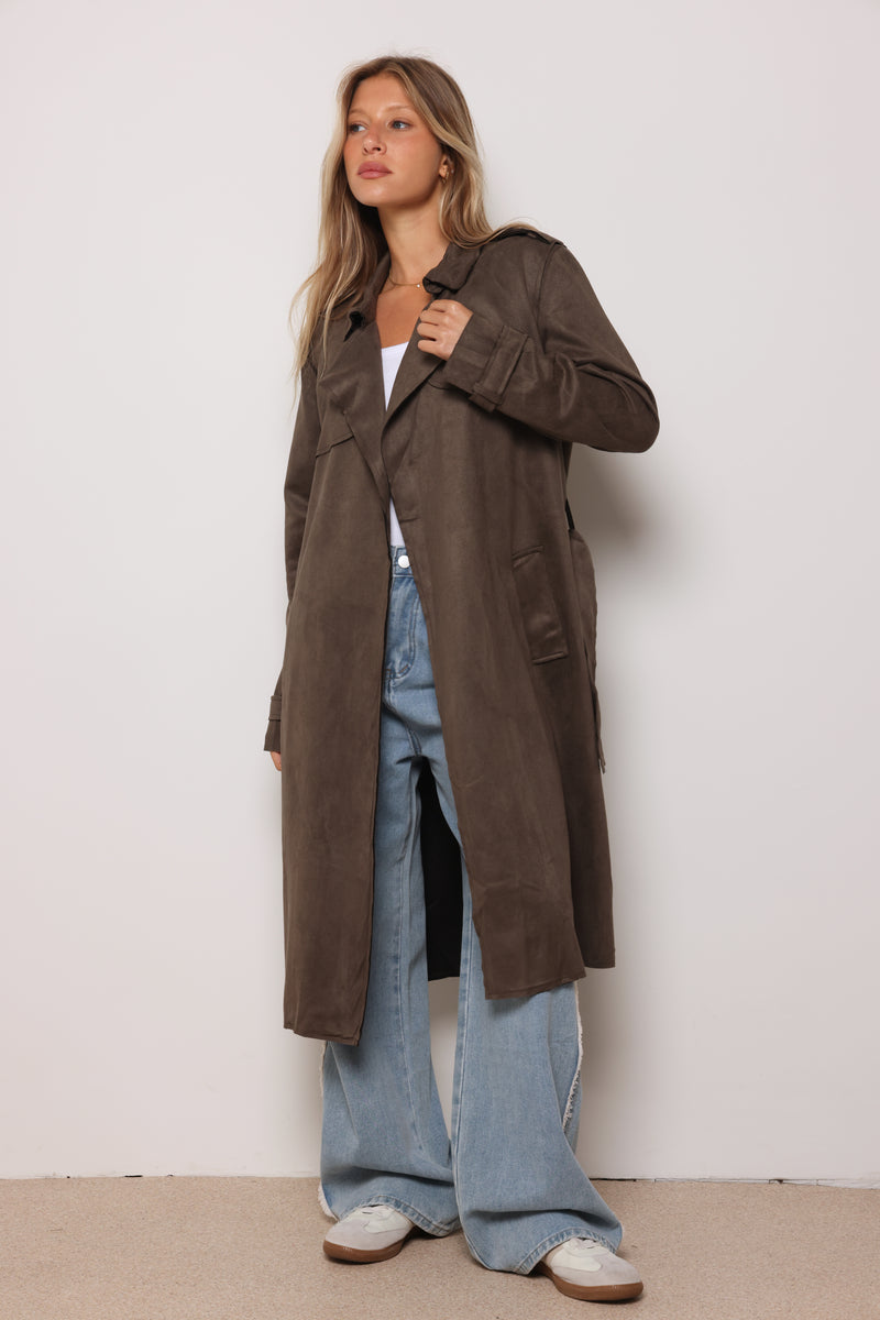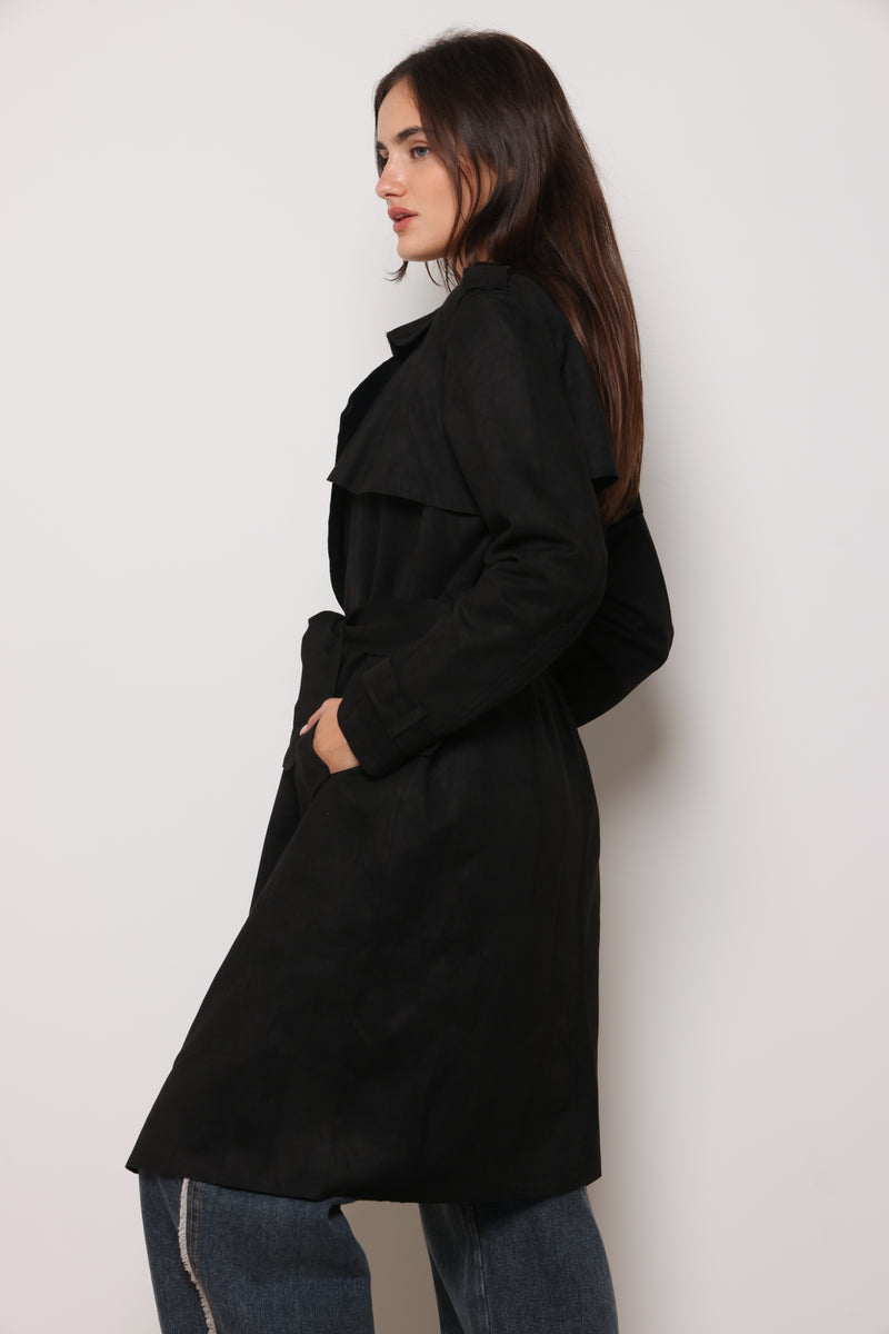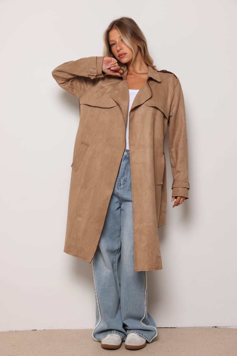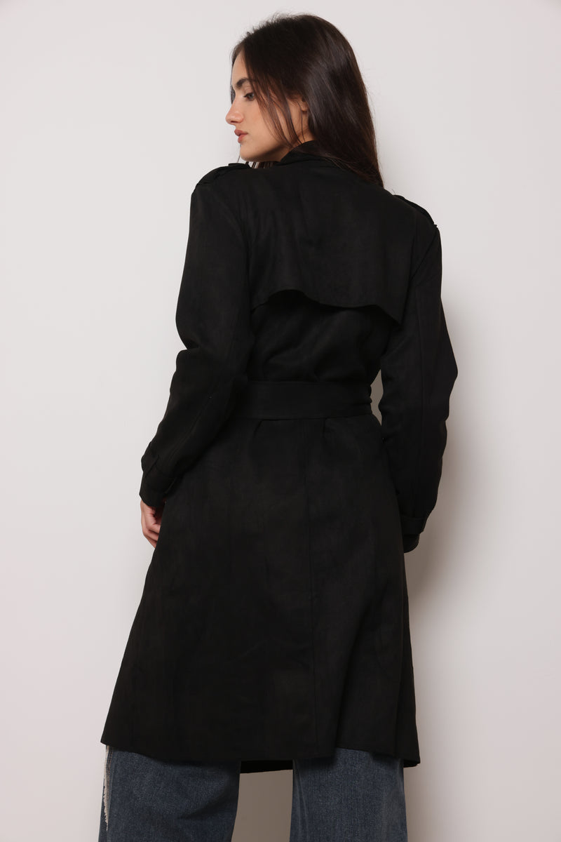מעיל טראנץ׳ היסטרי בגזרה מעט אוברסייזית , צווארון וחגורת קשירה.