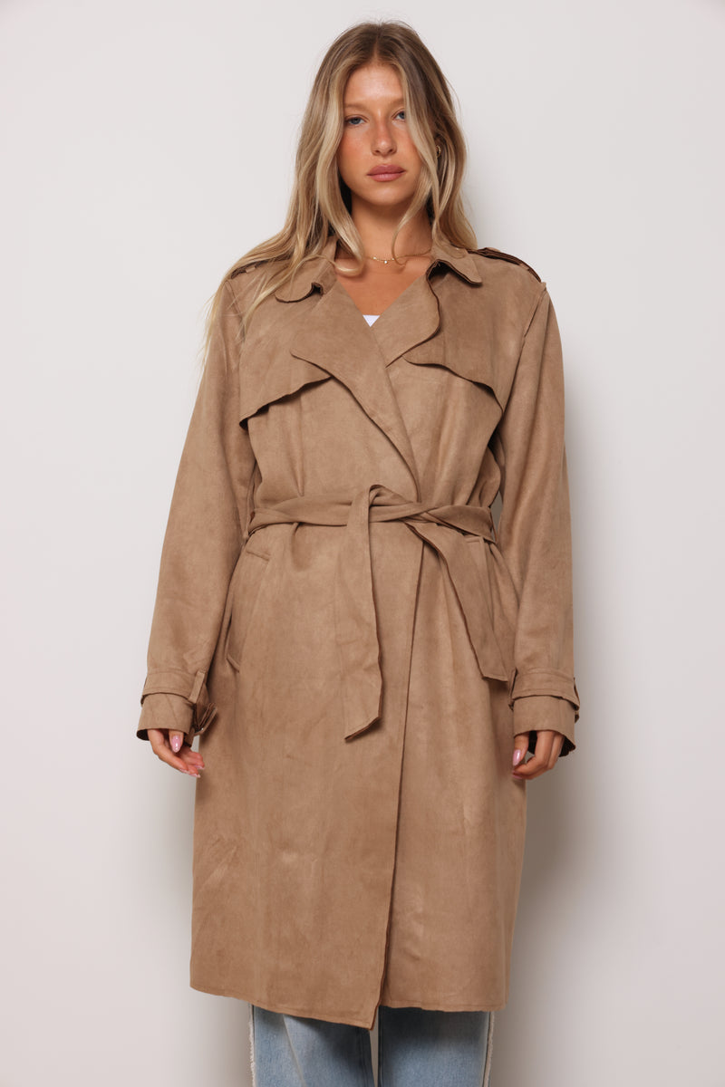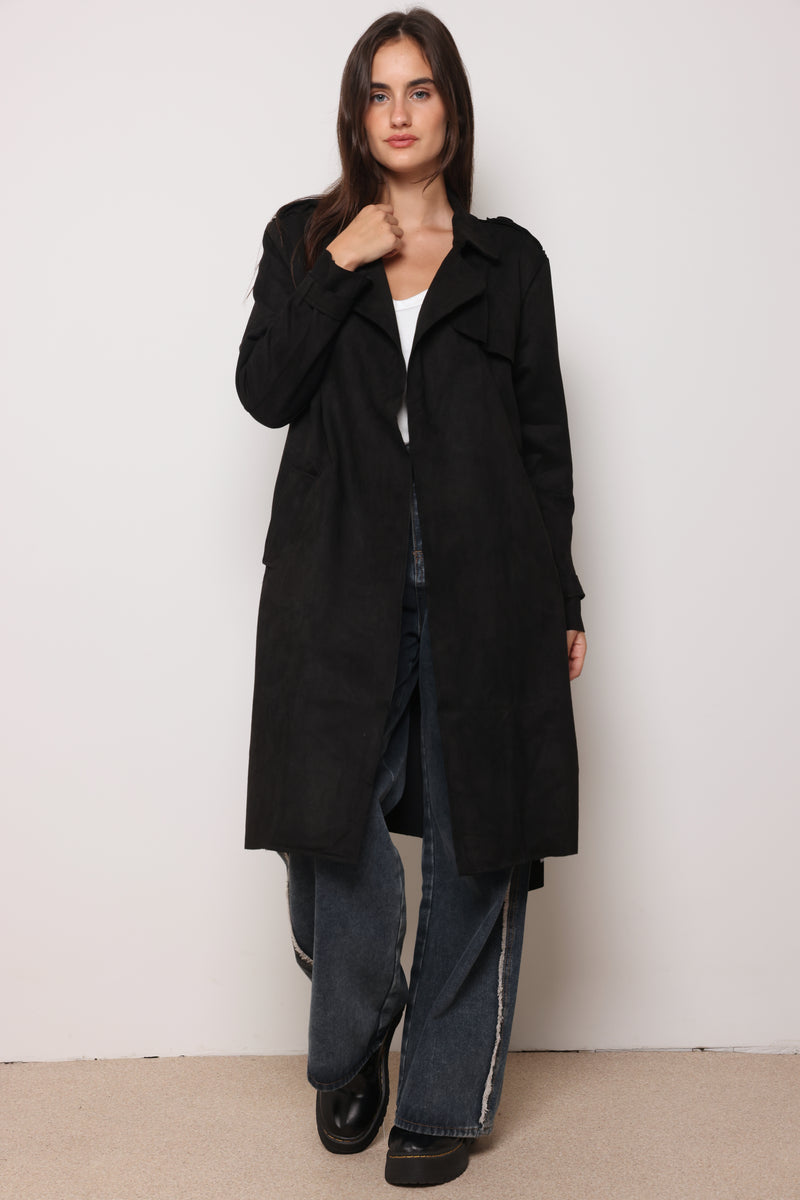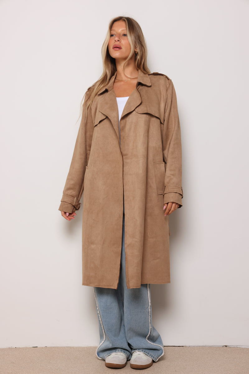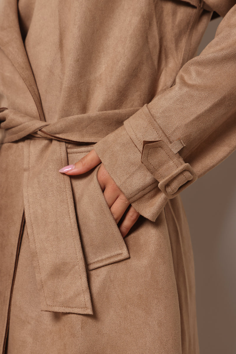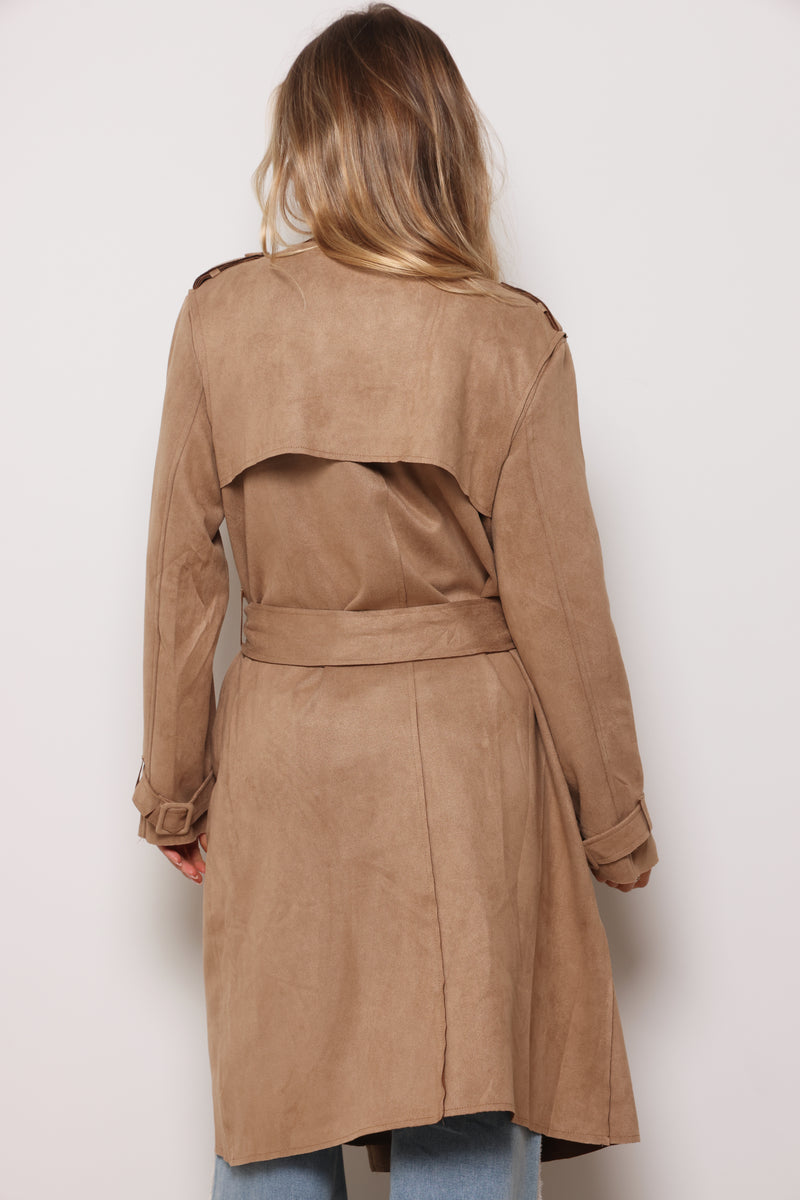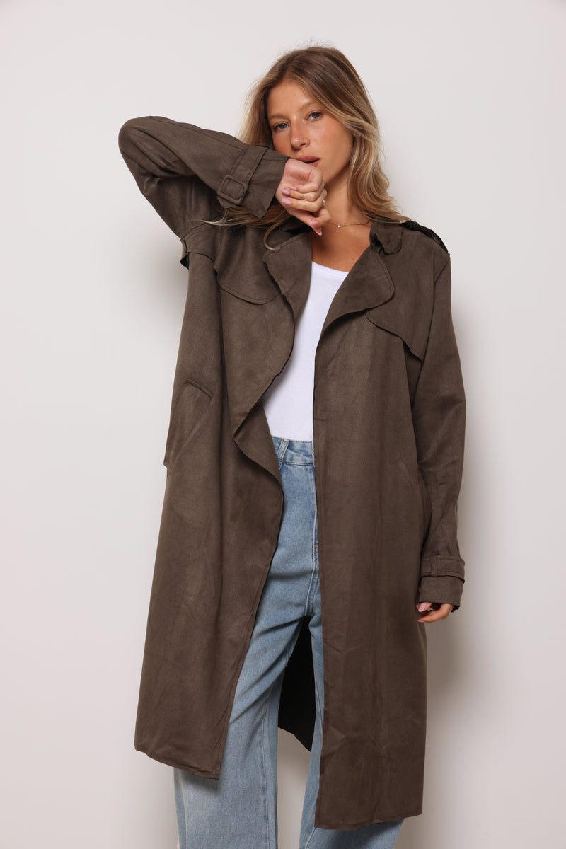 מעיל טראנץ׳ היסטרי בגזרה מעט אוברסייזית , צווארון וחגורת קשירה.