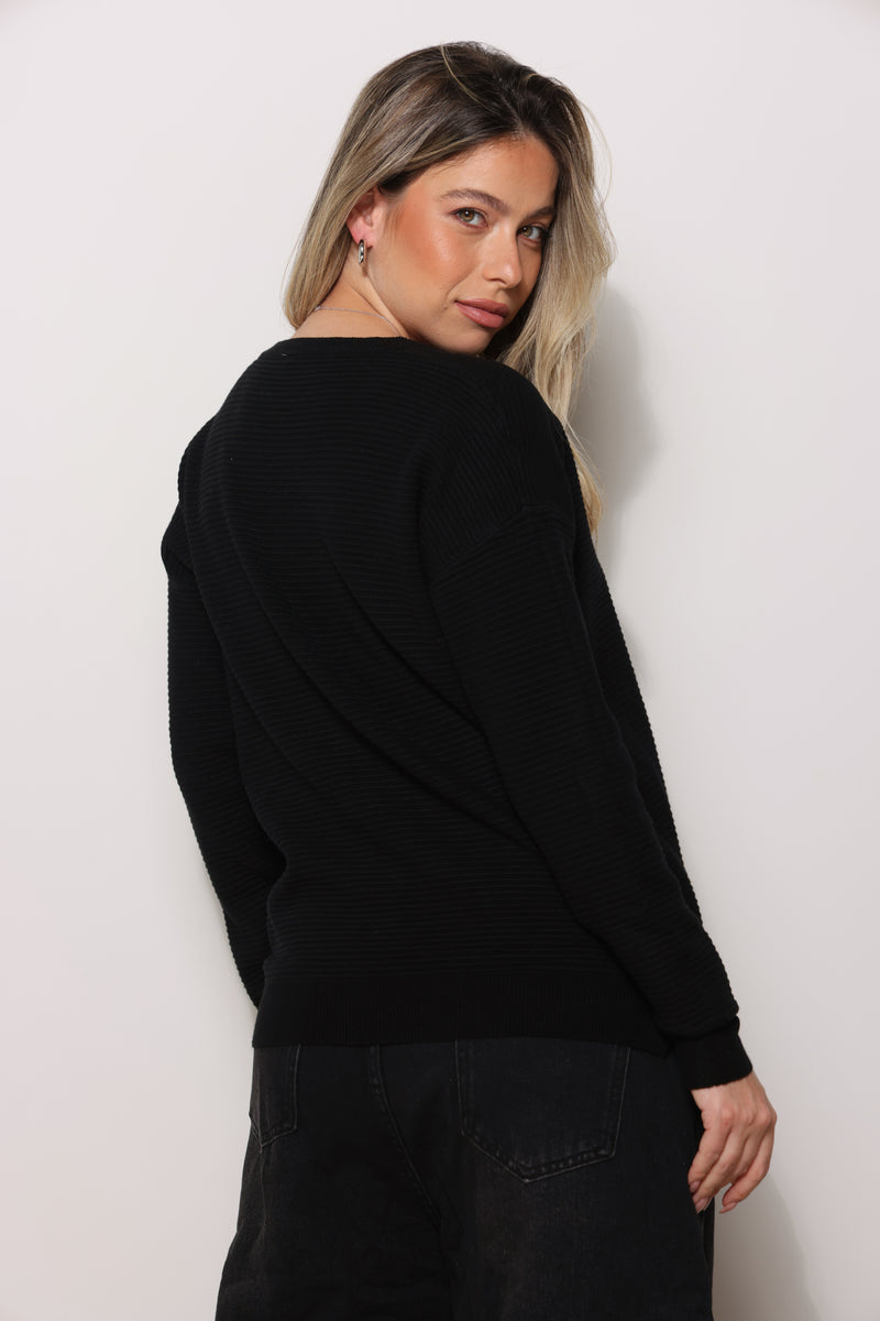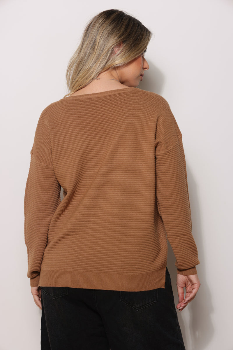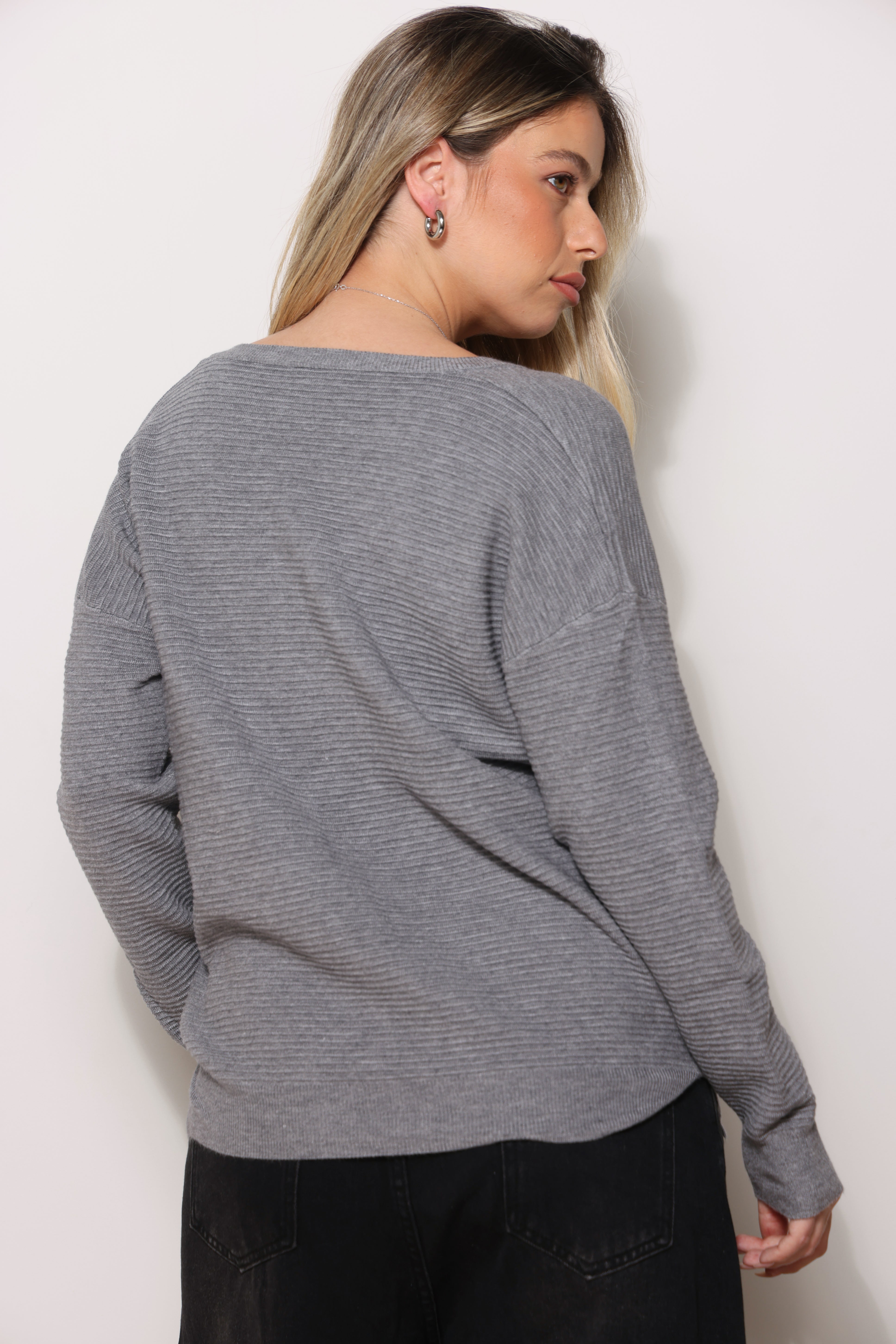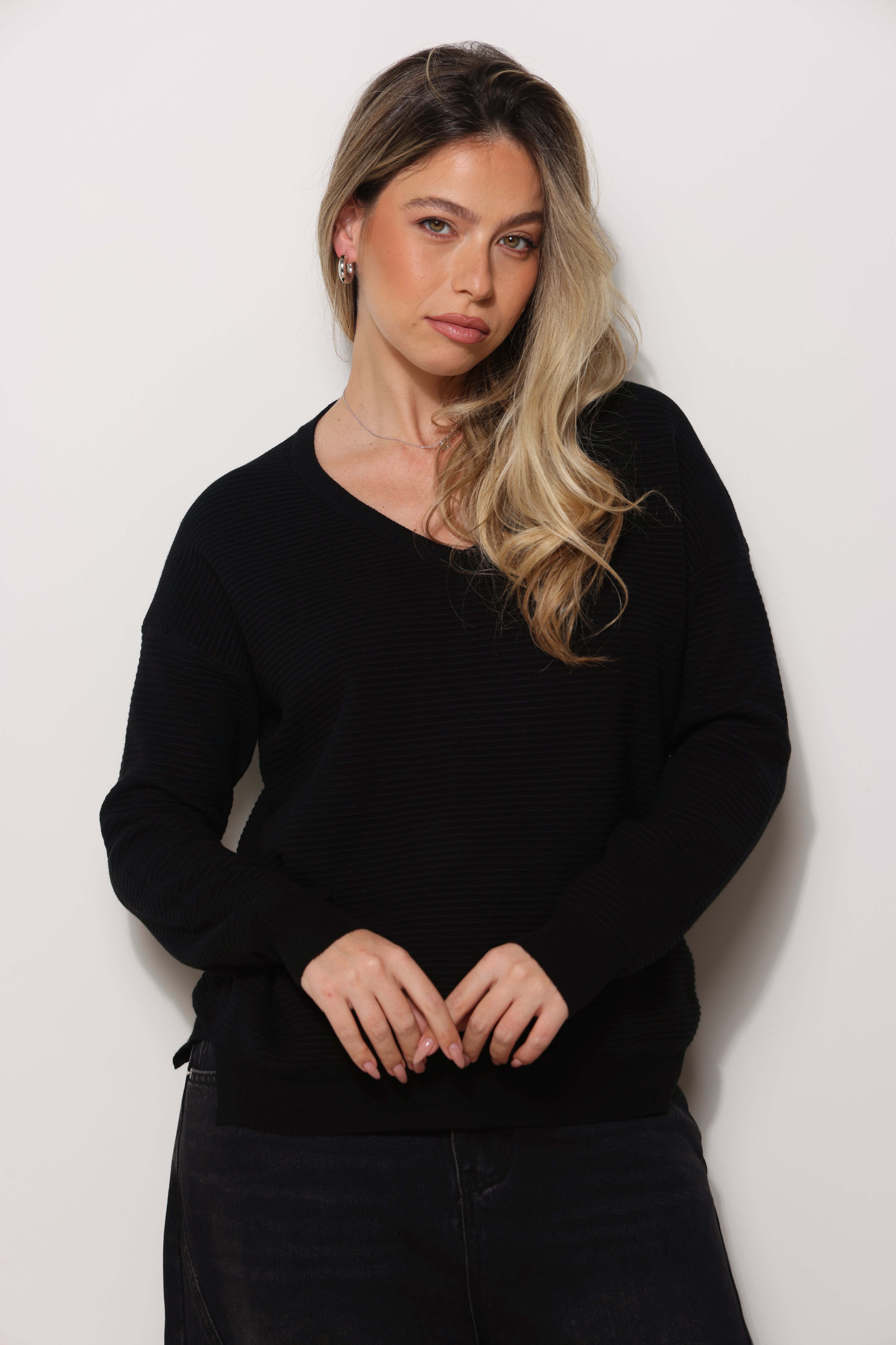 סריג במגע רך בייסיק צווארון וי בטקסטורה.