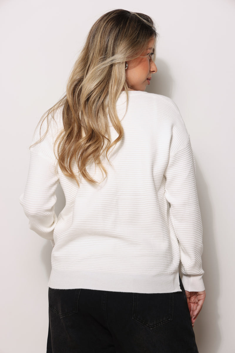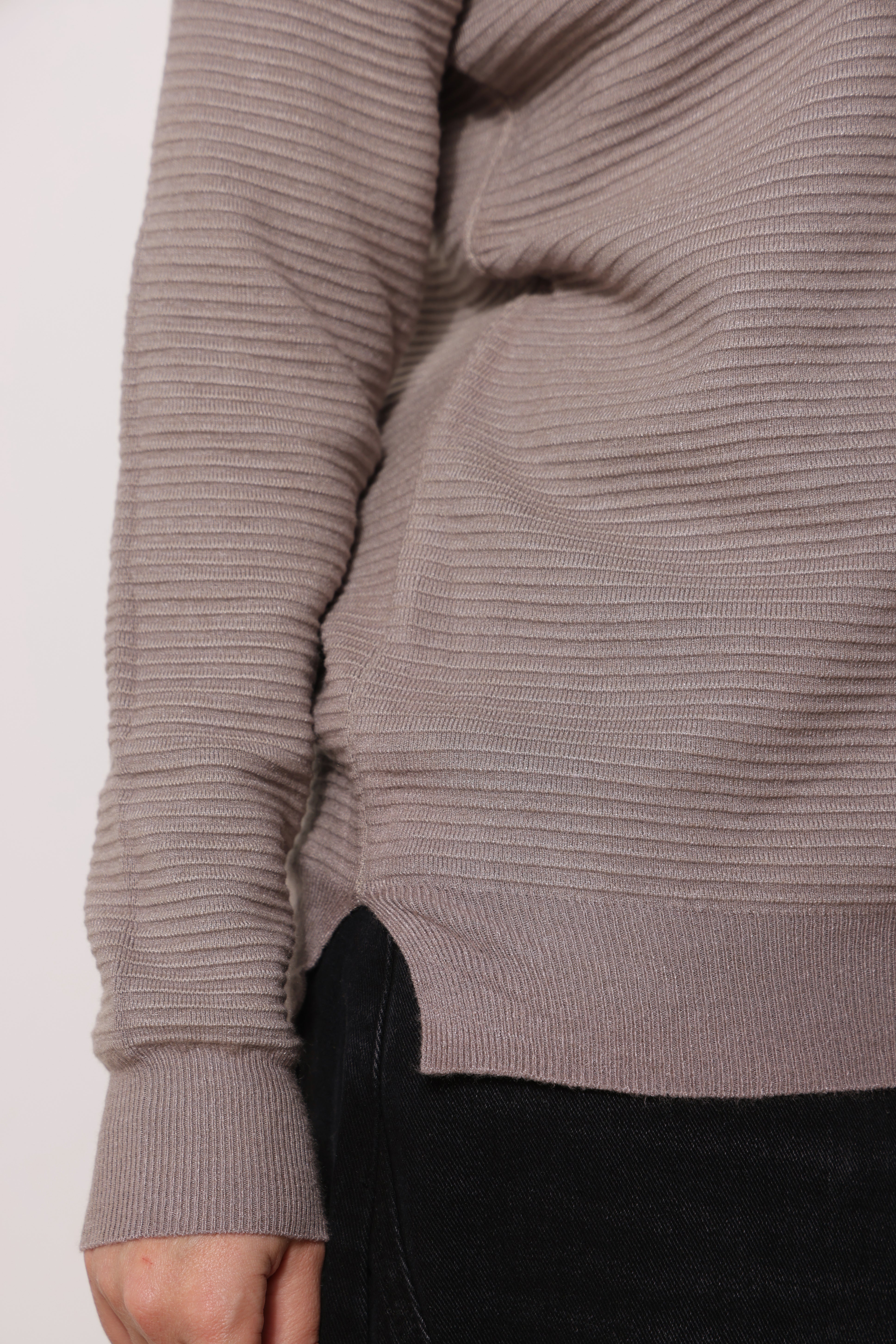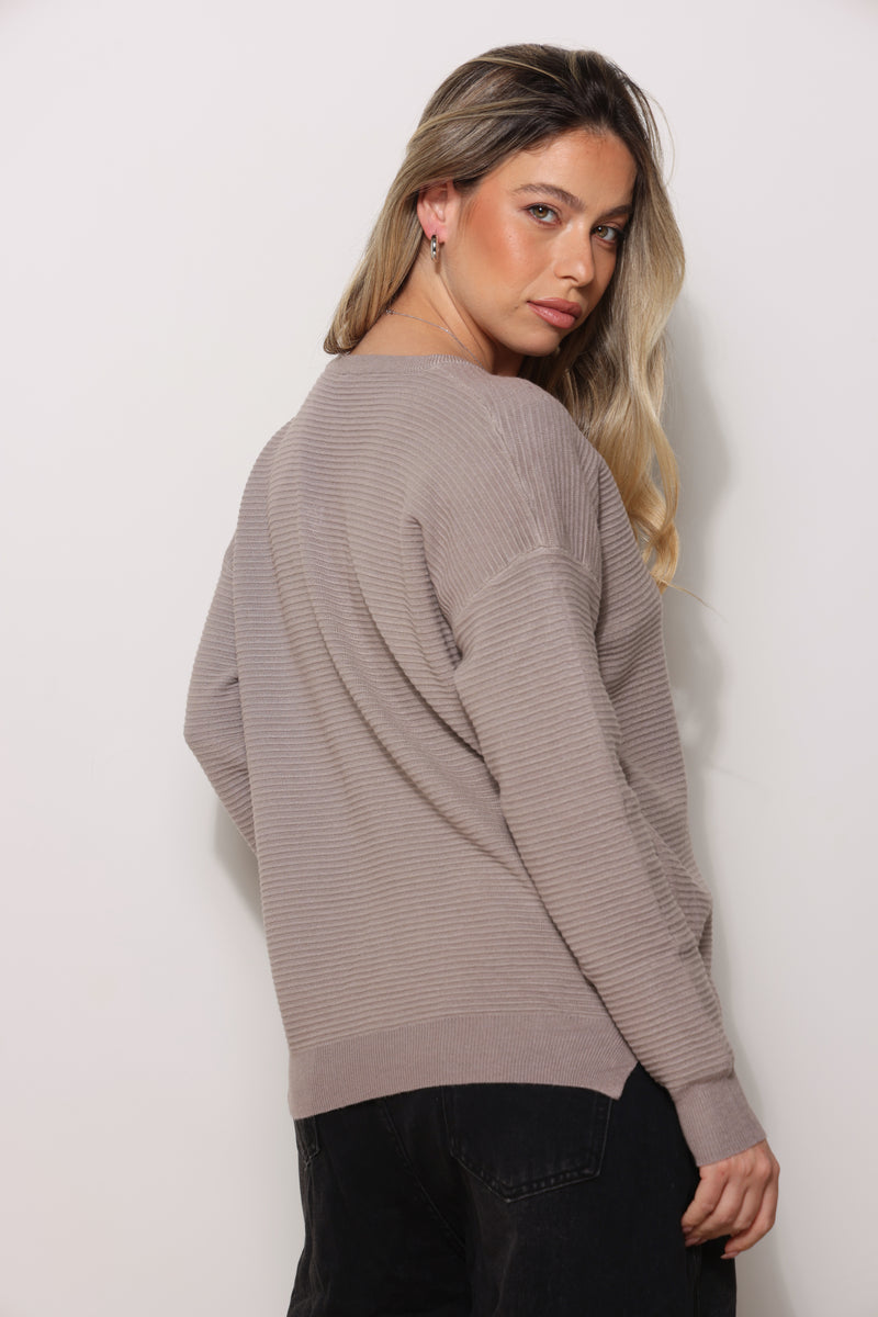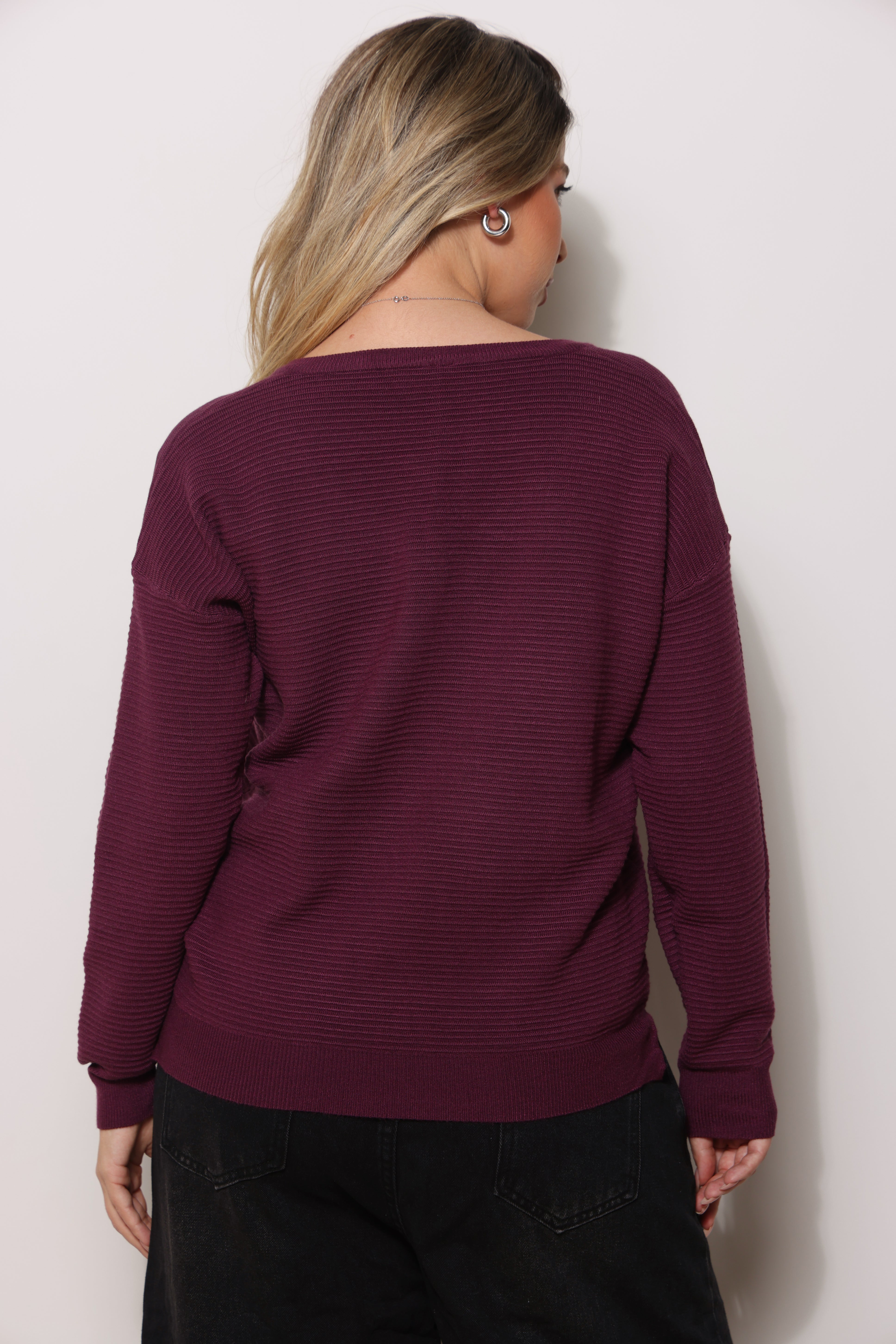 סריג במגע רך בייסיק צווארון וי בטקסטורה.