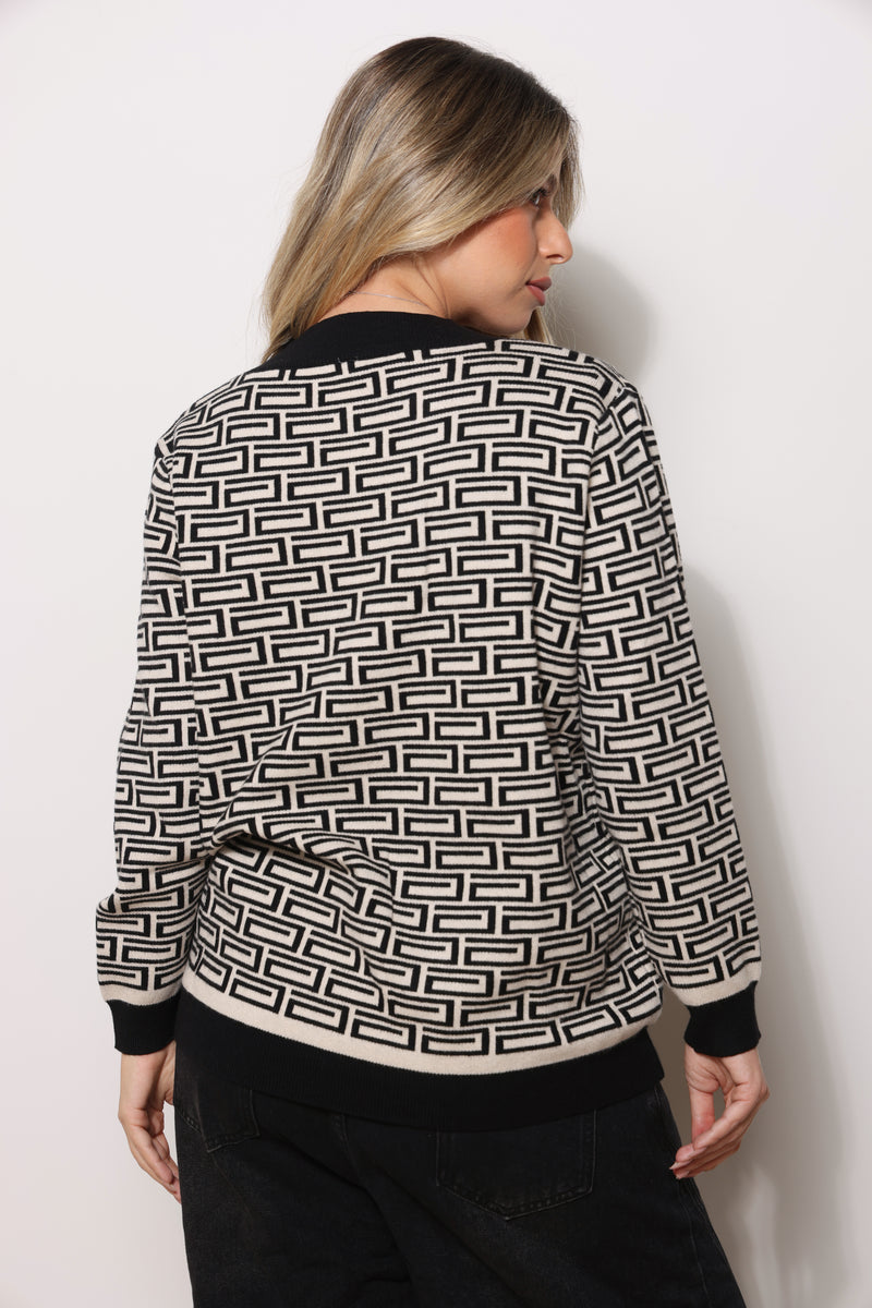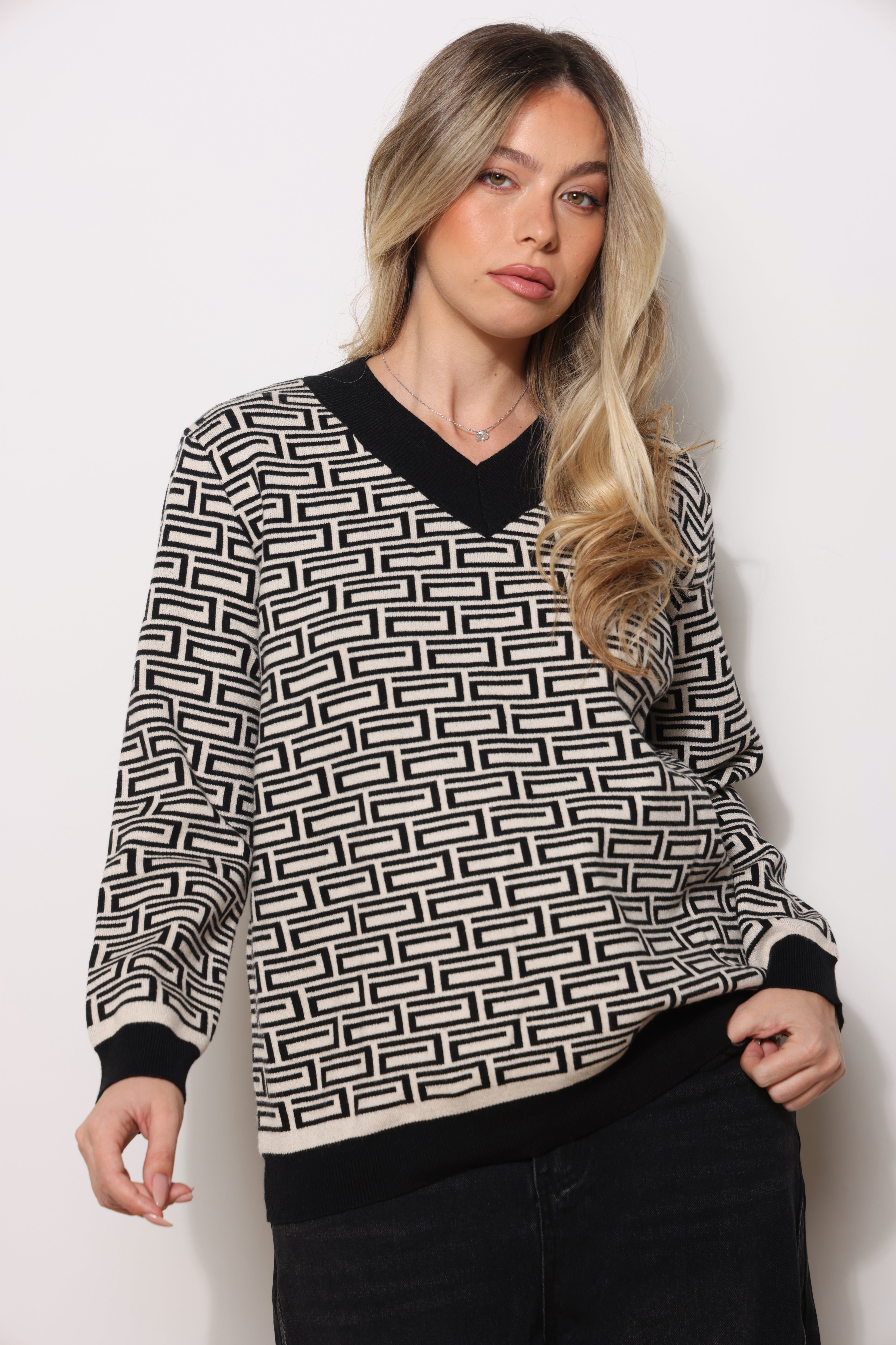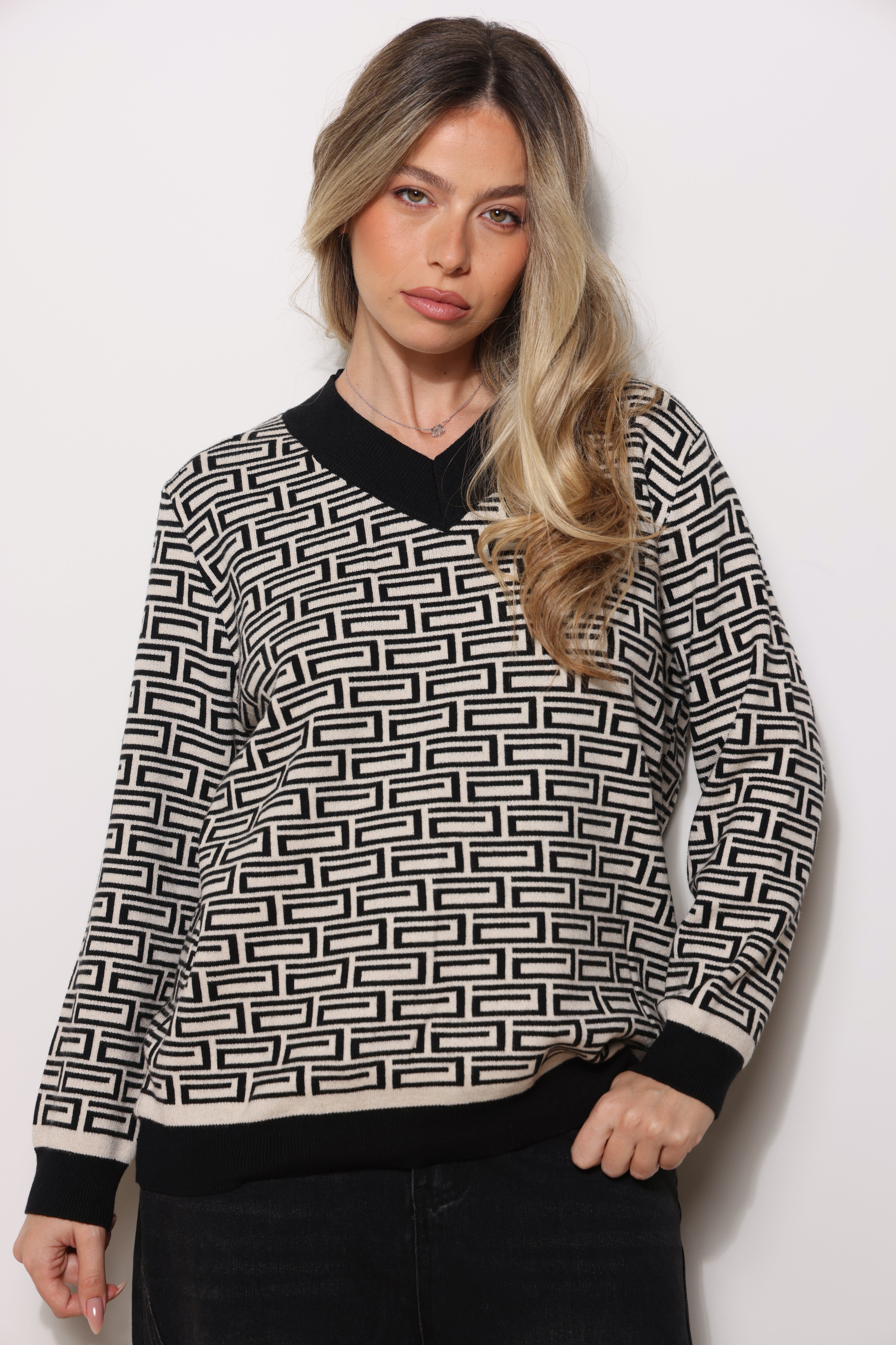 סריג במגע רך עם צווארון וי בפרינט אלגנטי !