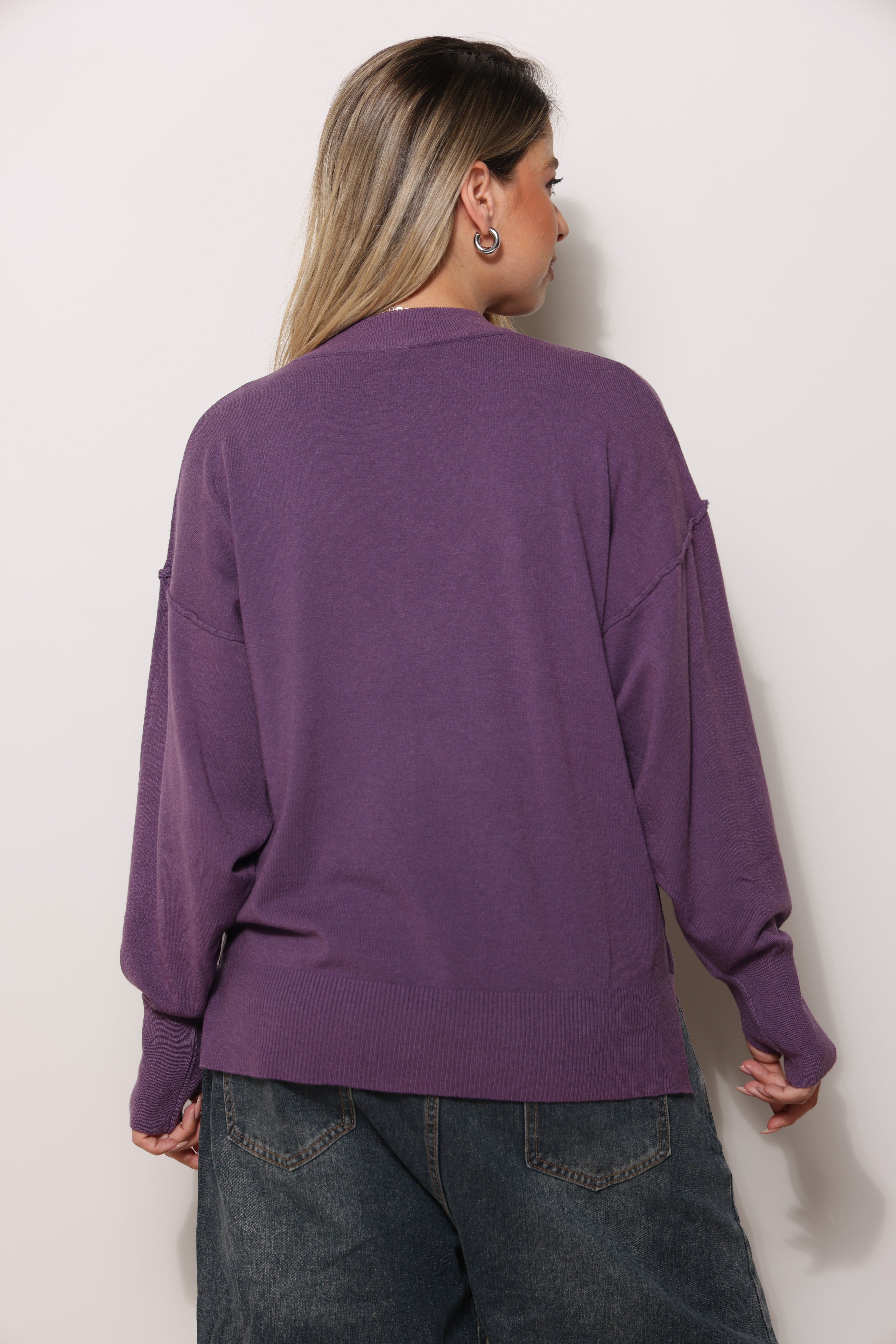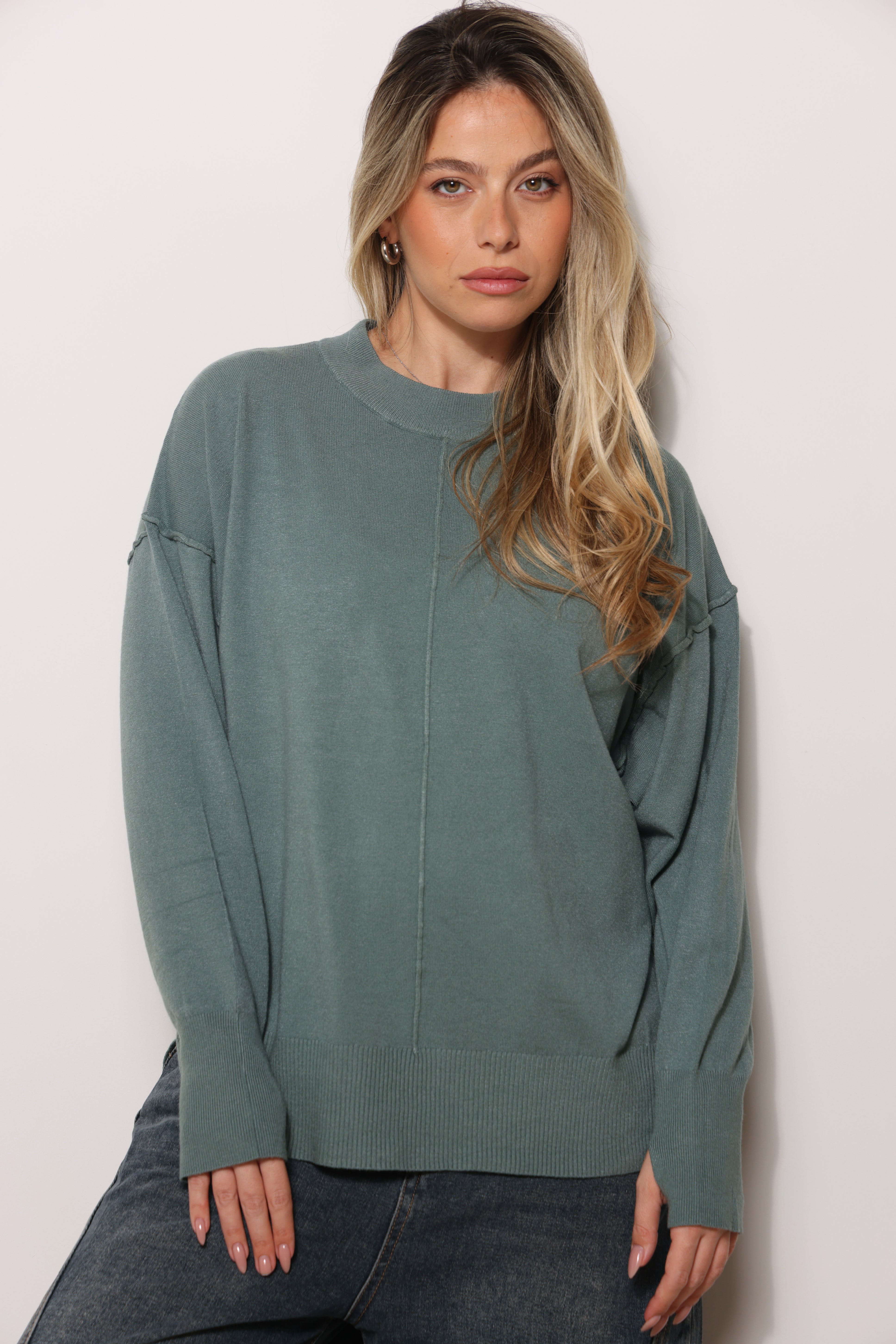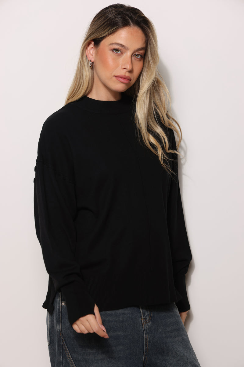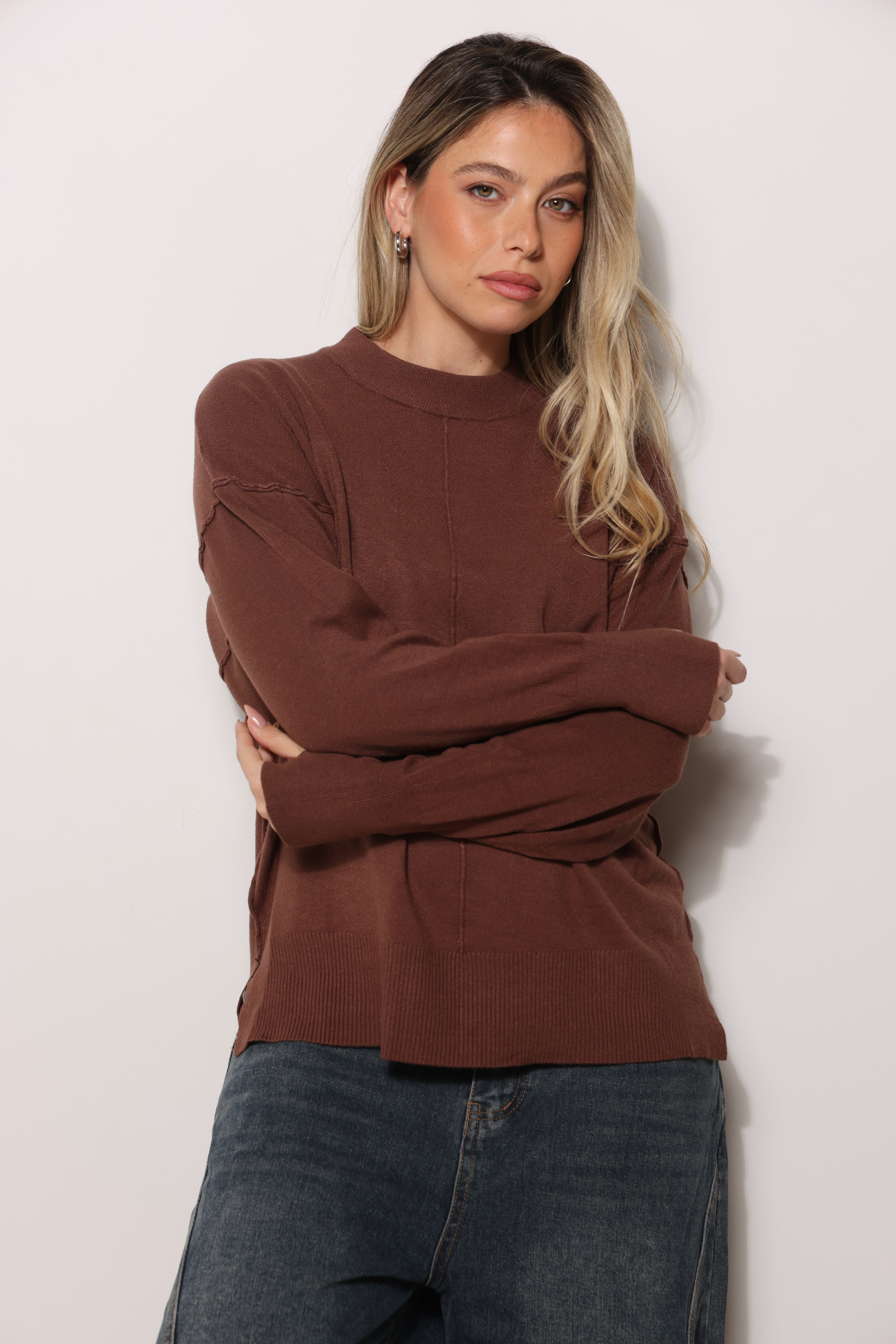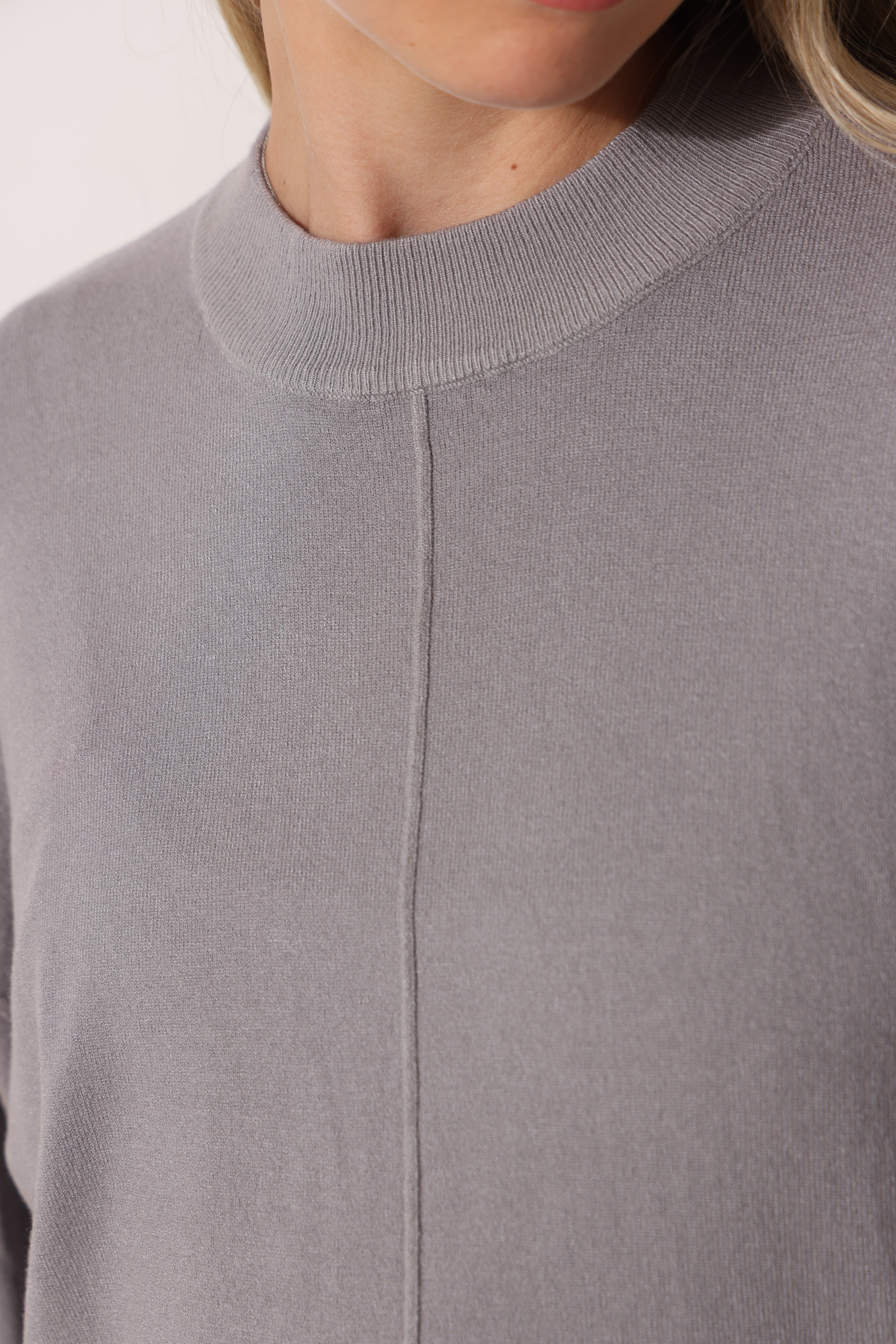חולצת בייסיק מבד סריג במגע רך עם תפר קדמי בולט וצווארון גולף קטן.