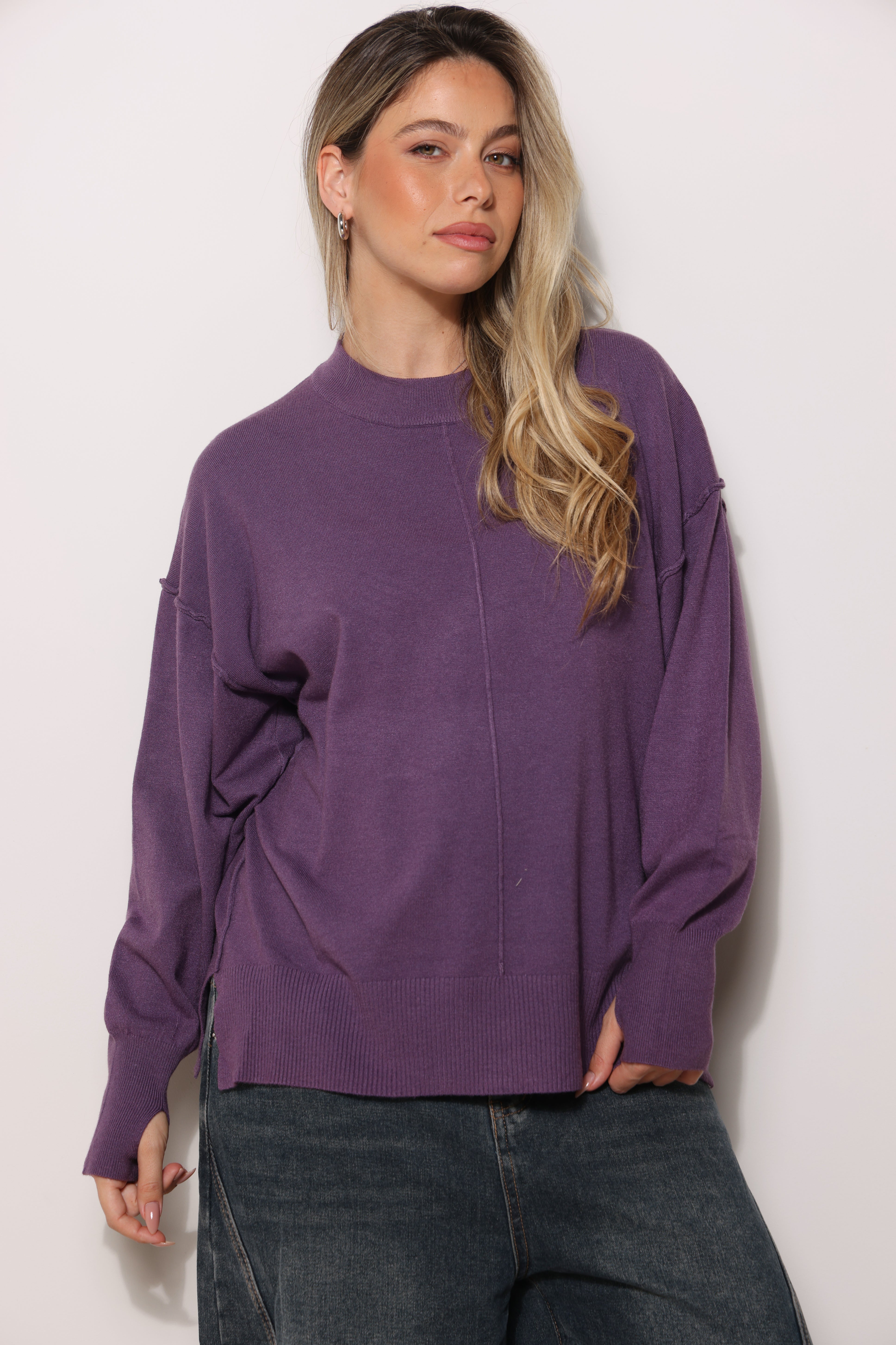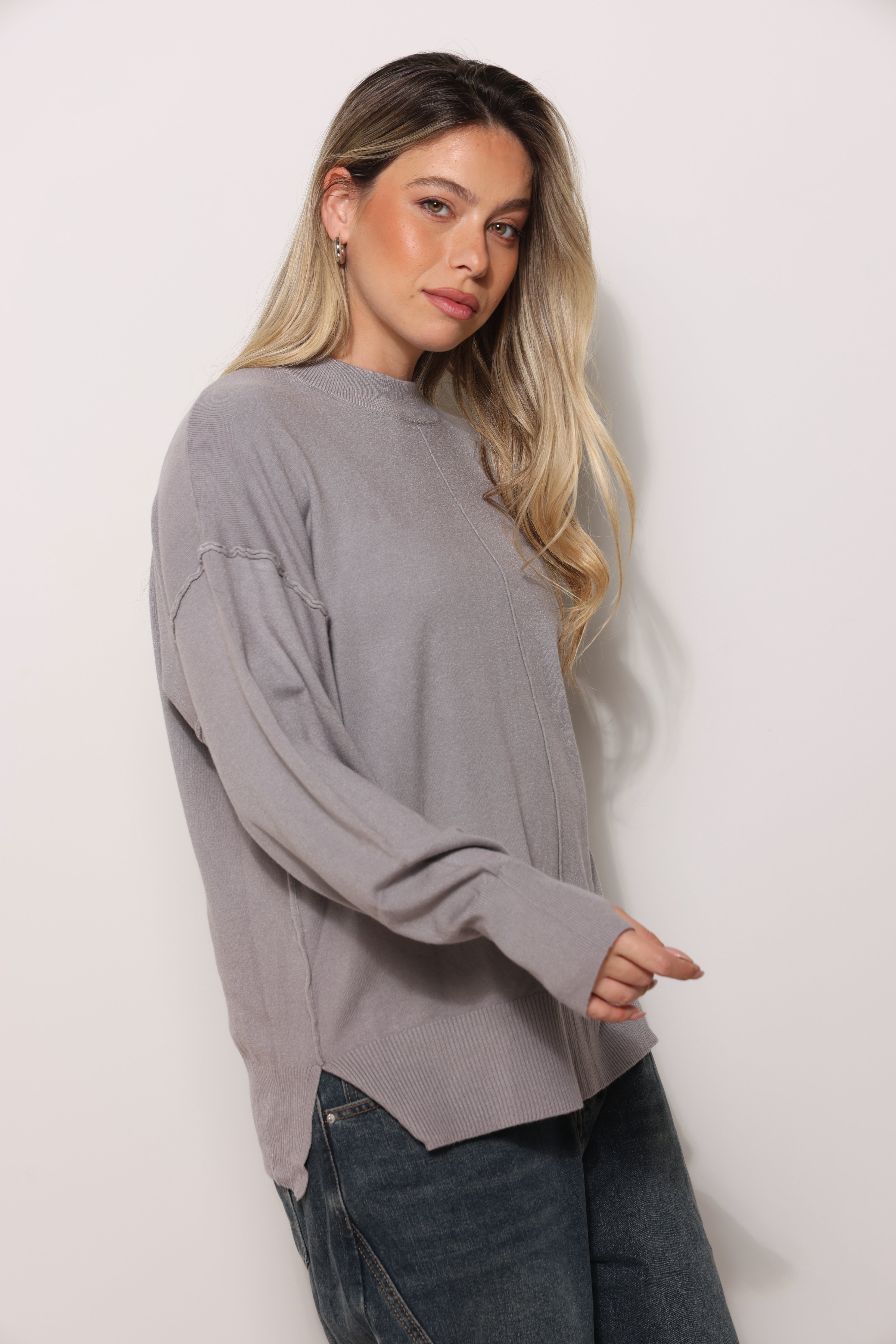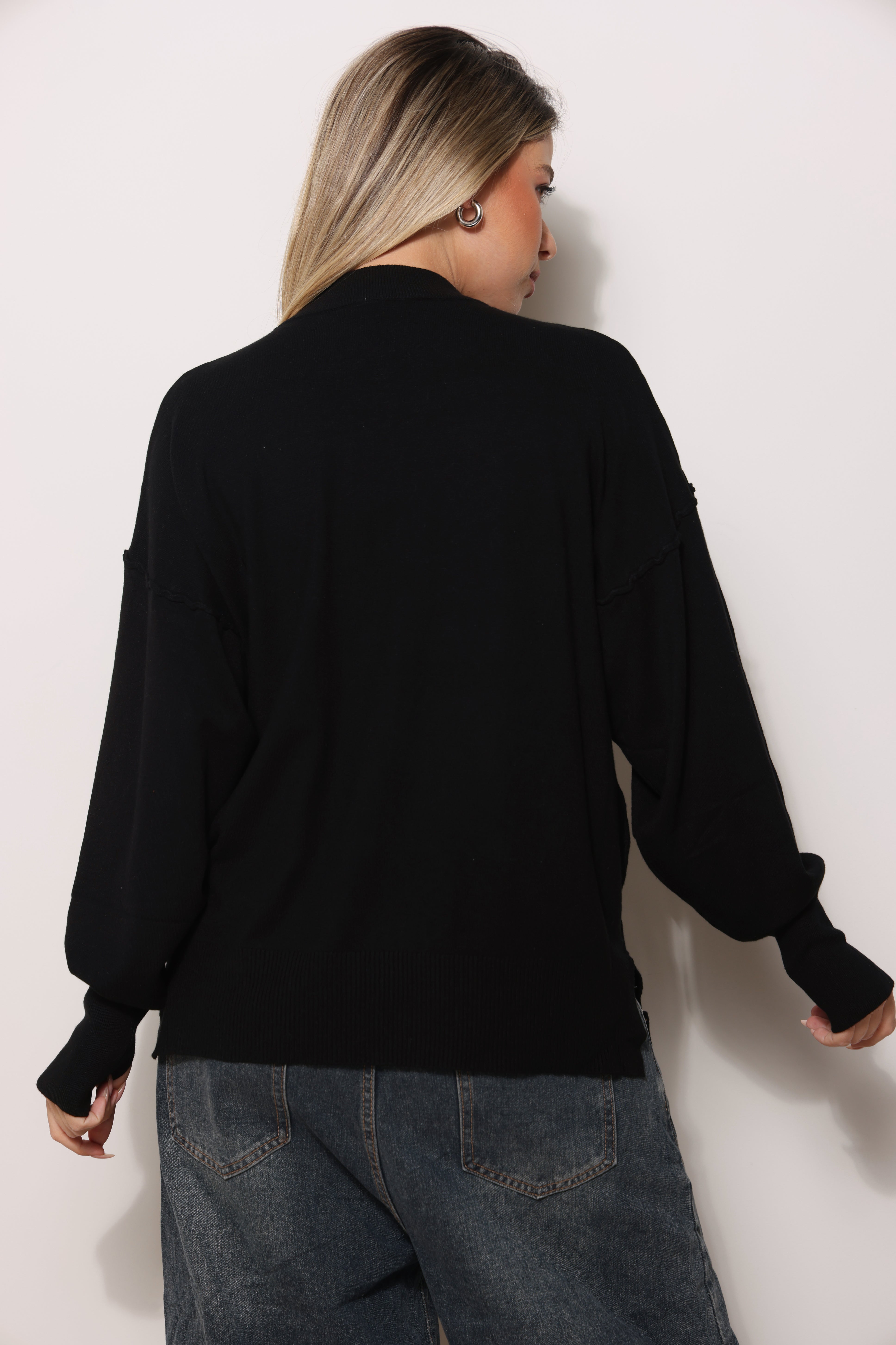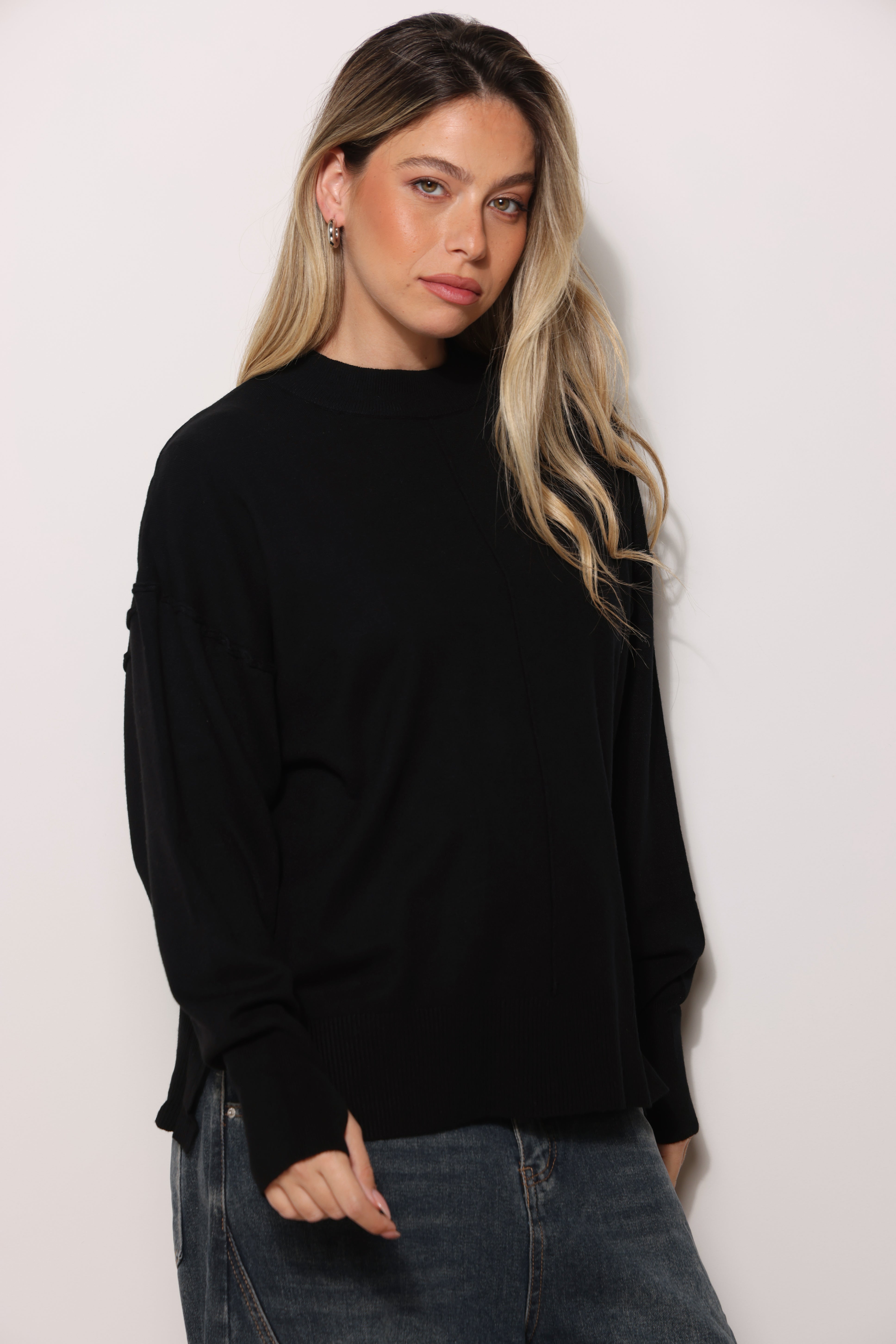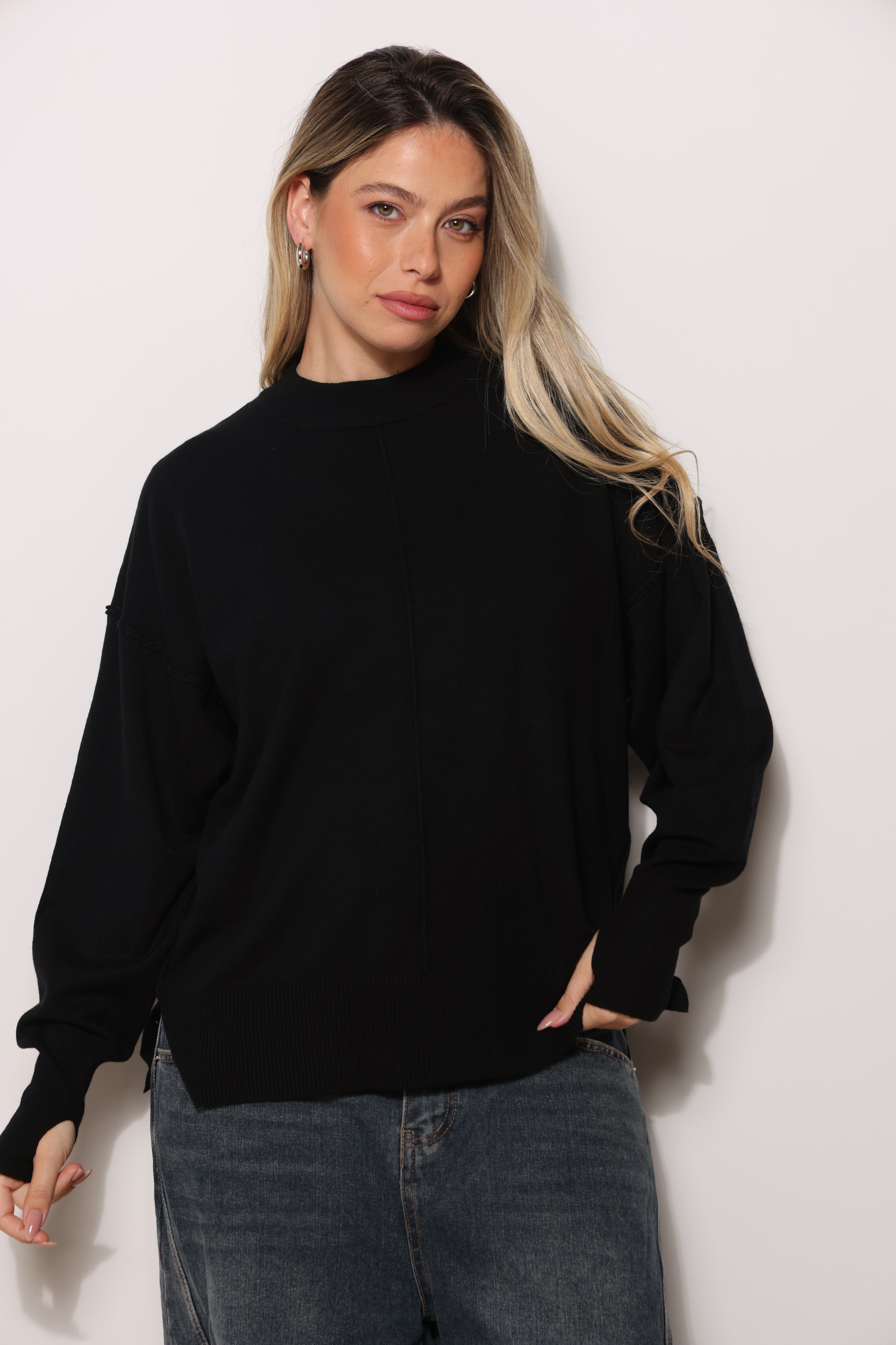 חולצת בייסיק מבד סריג במגע רך עם תפר קדמי בולט וצווארון גולף קטן.