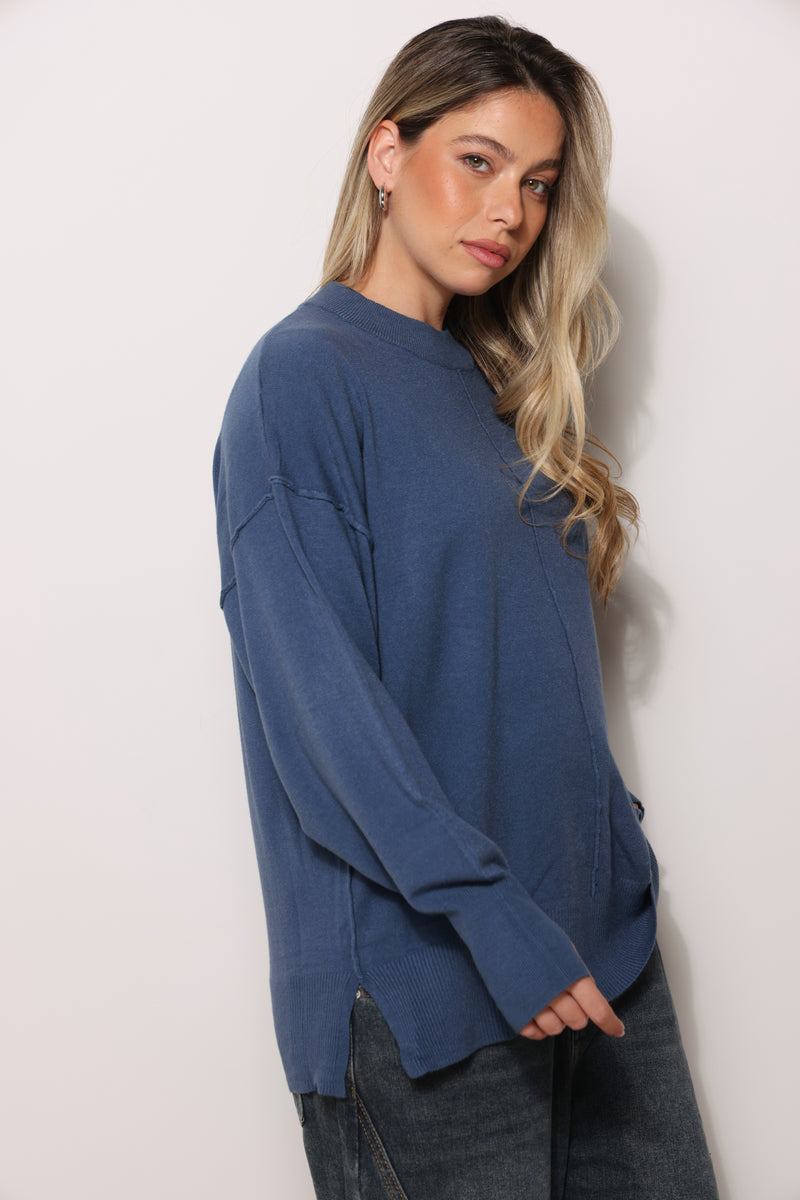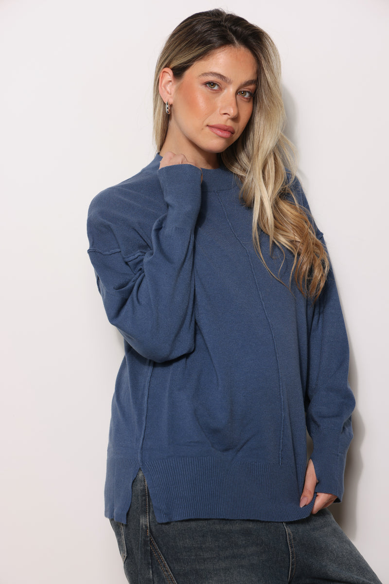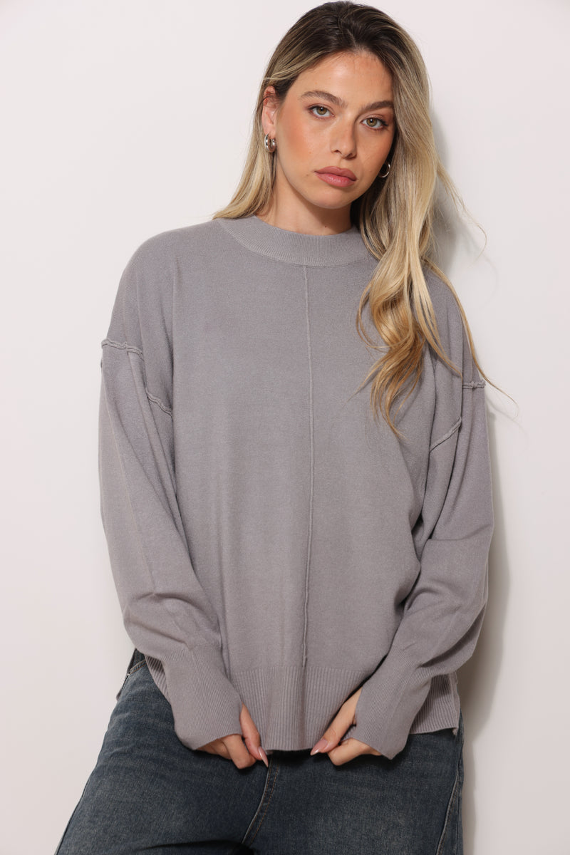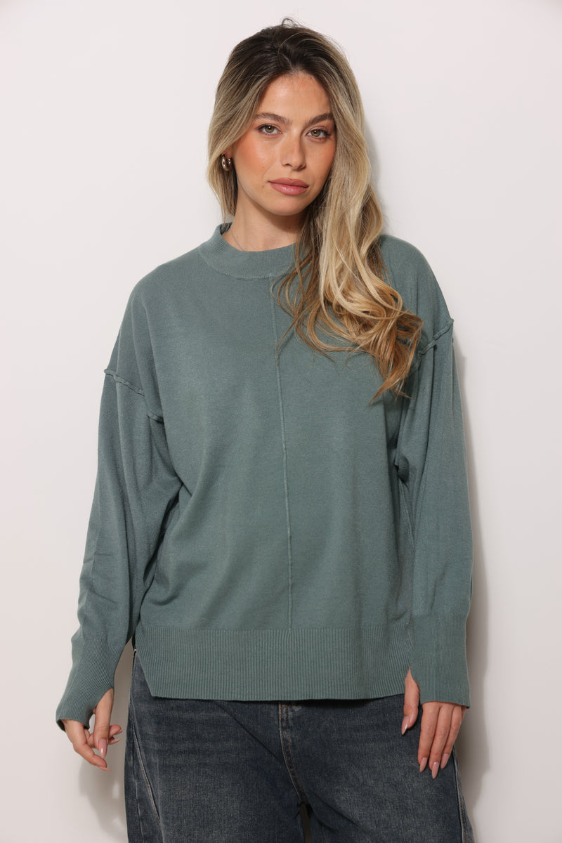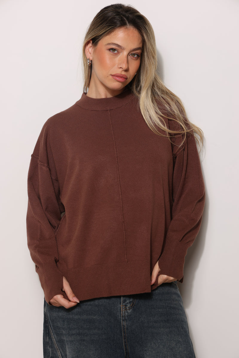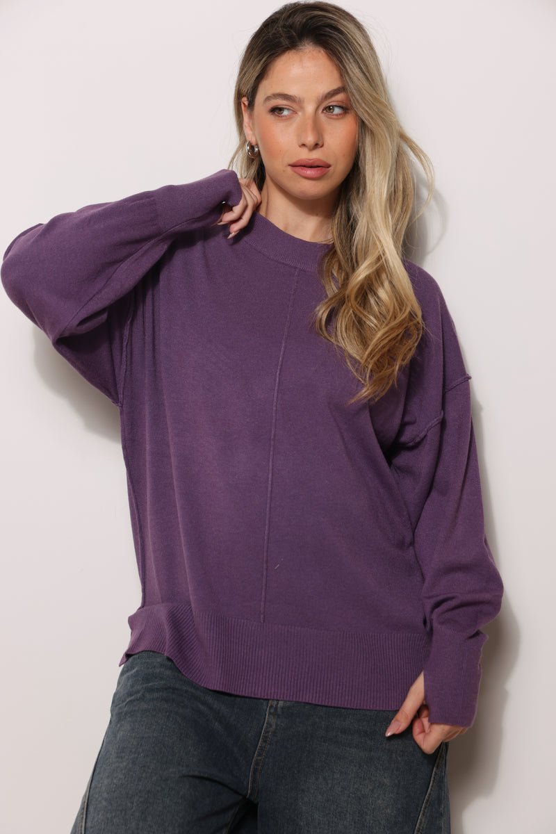 חולצת בייסיק מבד סריג במגע רך עם תפר קדמי בולט וצווארון גולף קטן.