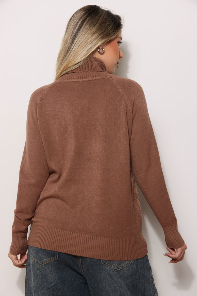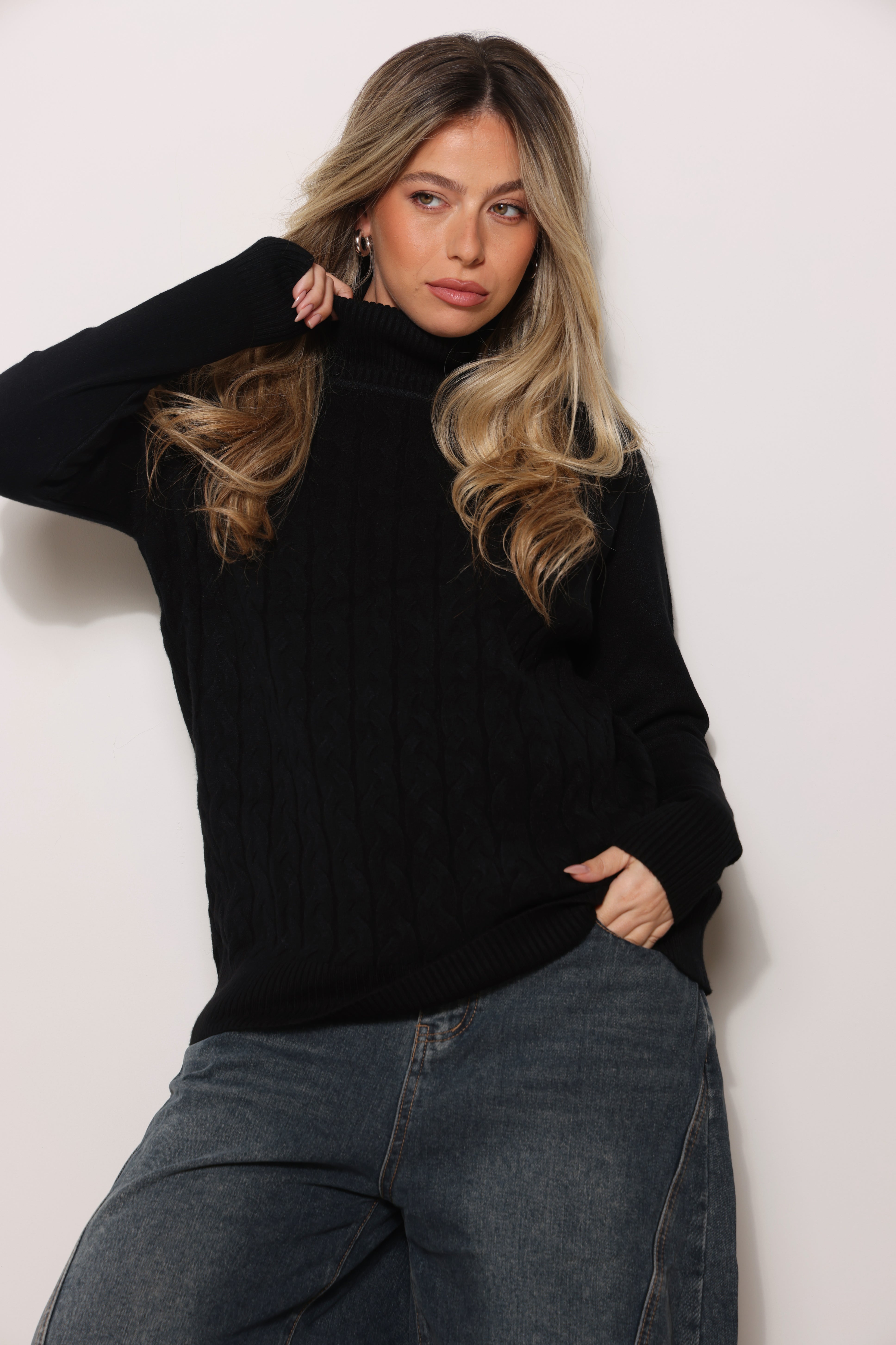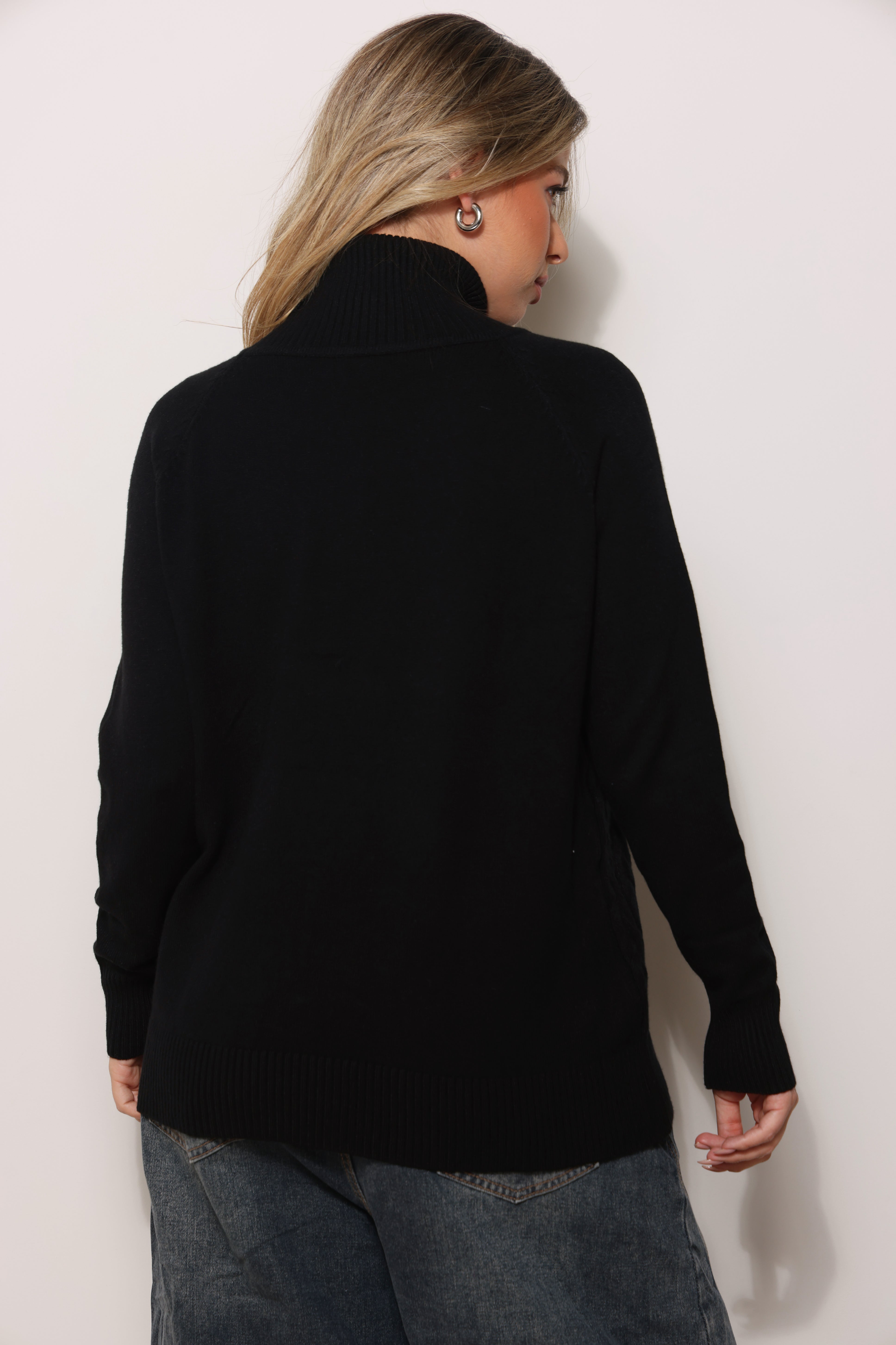 חולצת סריג במגע רך עם טקסטורת צמות וצווארון גולף.
