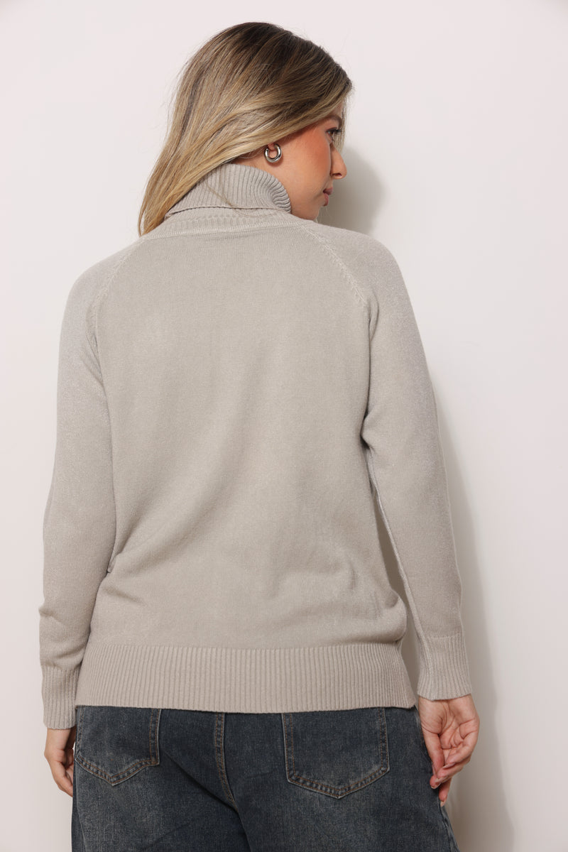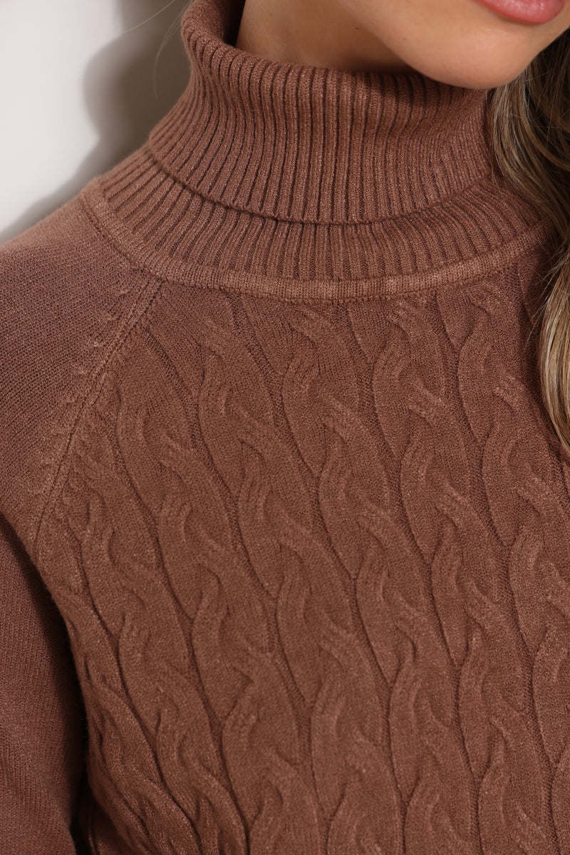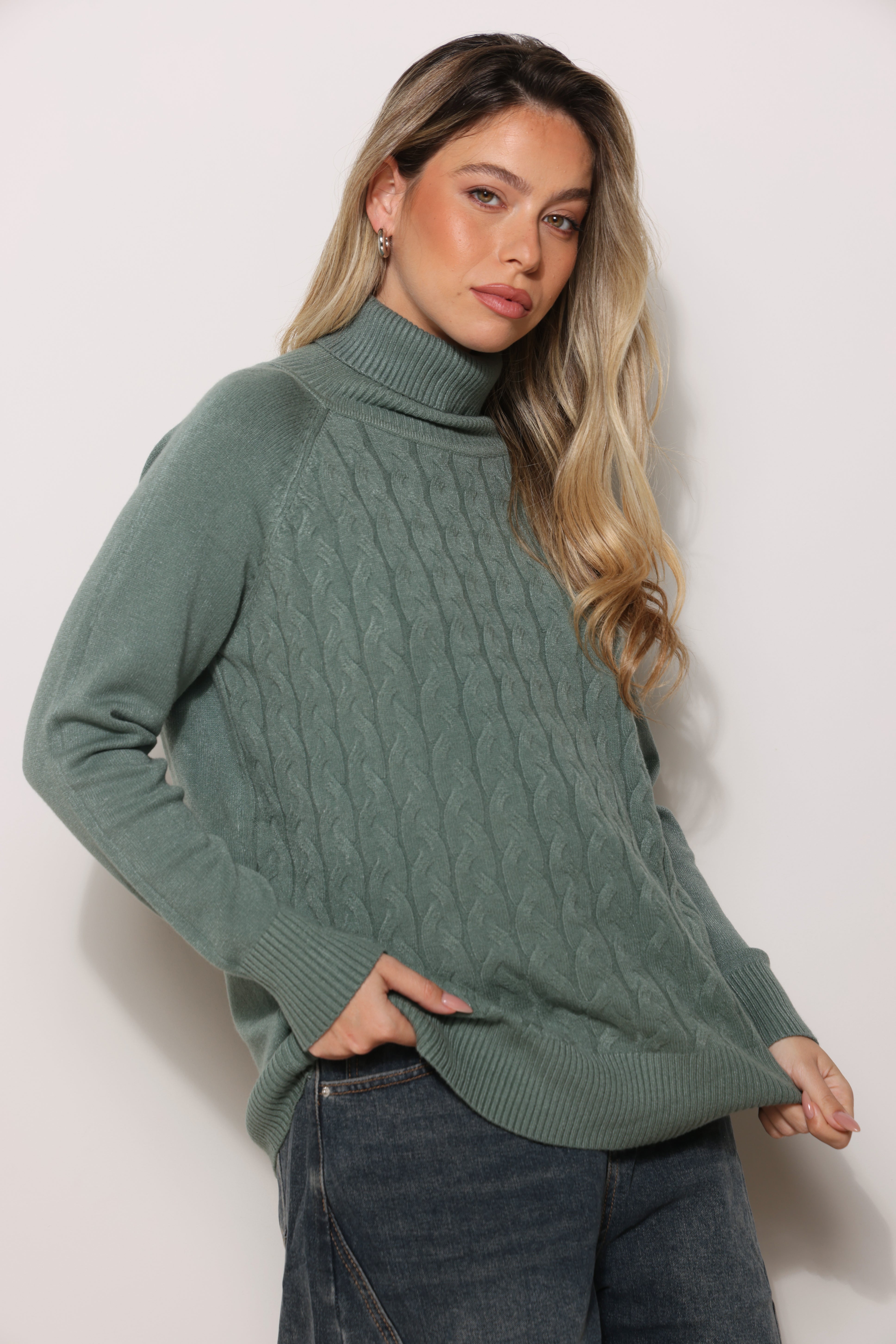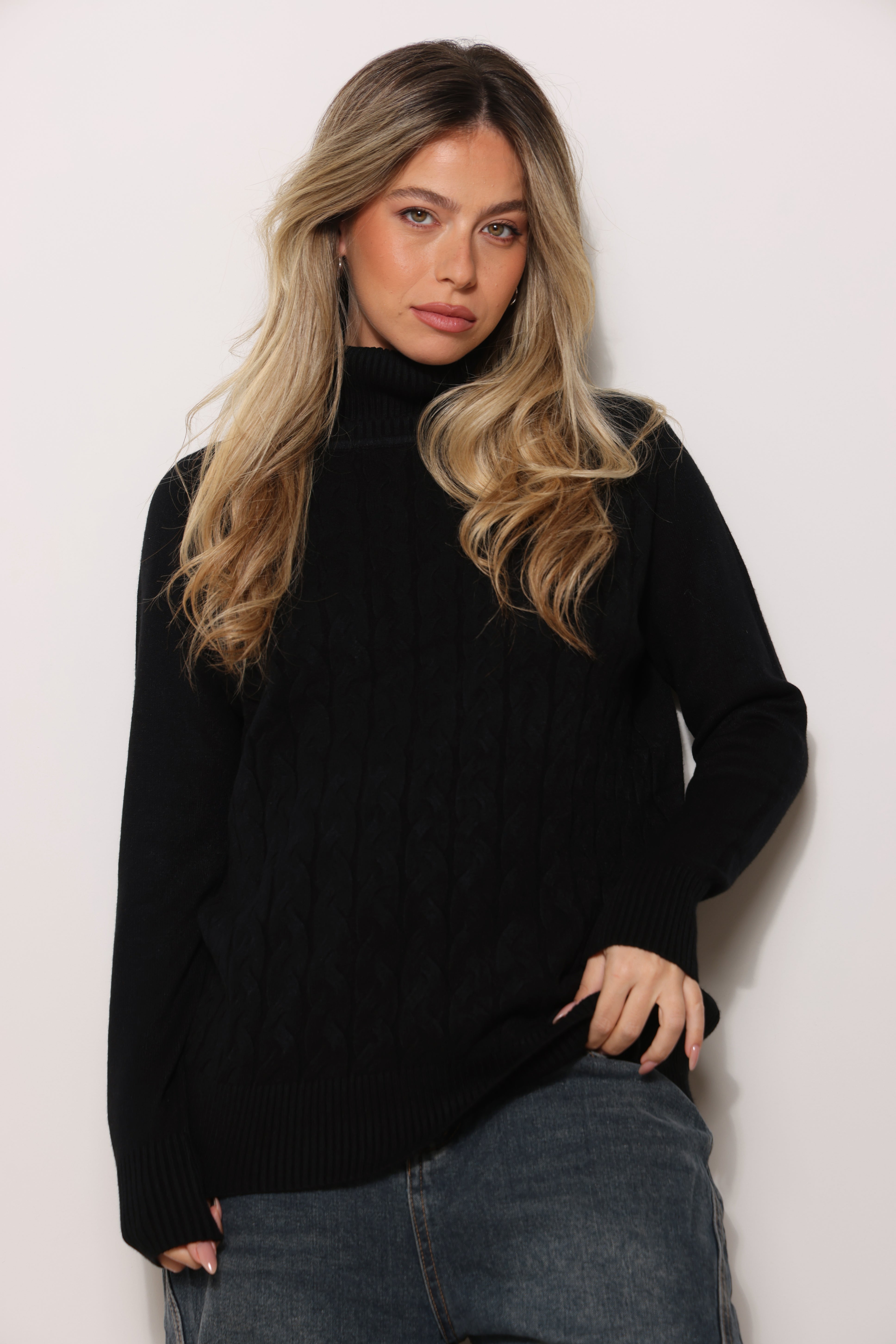 חולצת סריג במגע רך עם טקסטורת צמות וצווארון גולף.