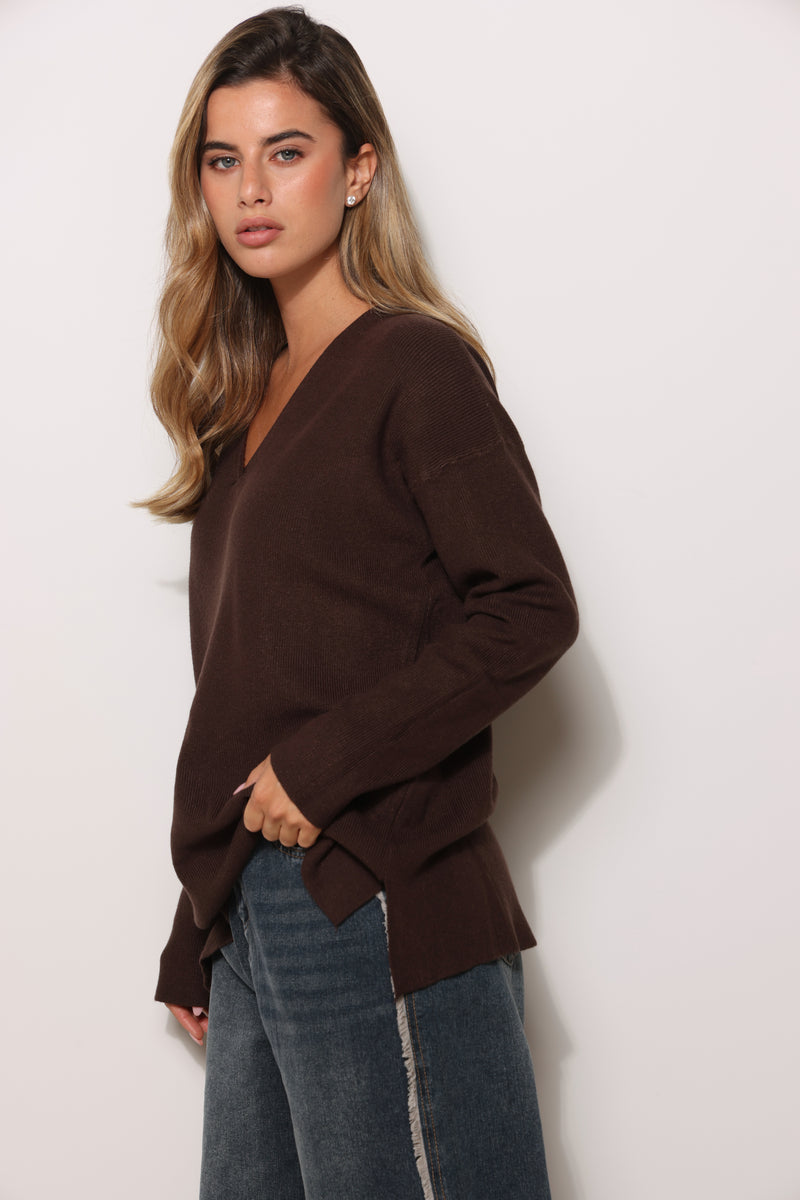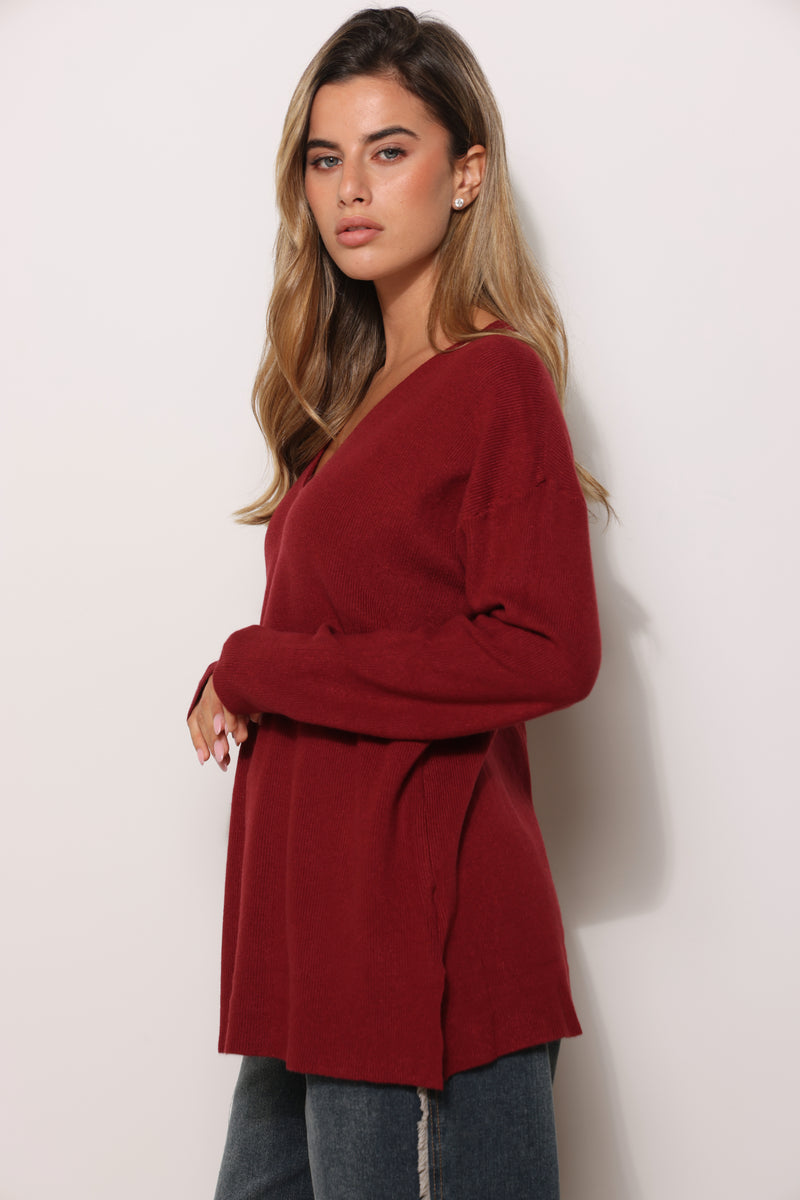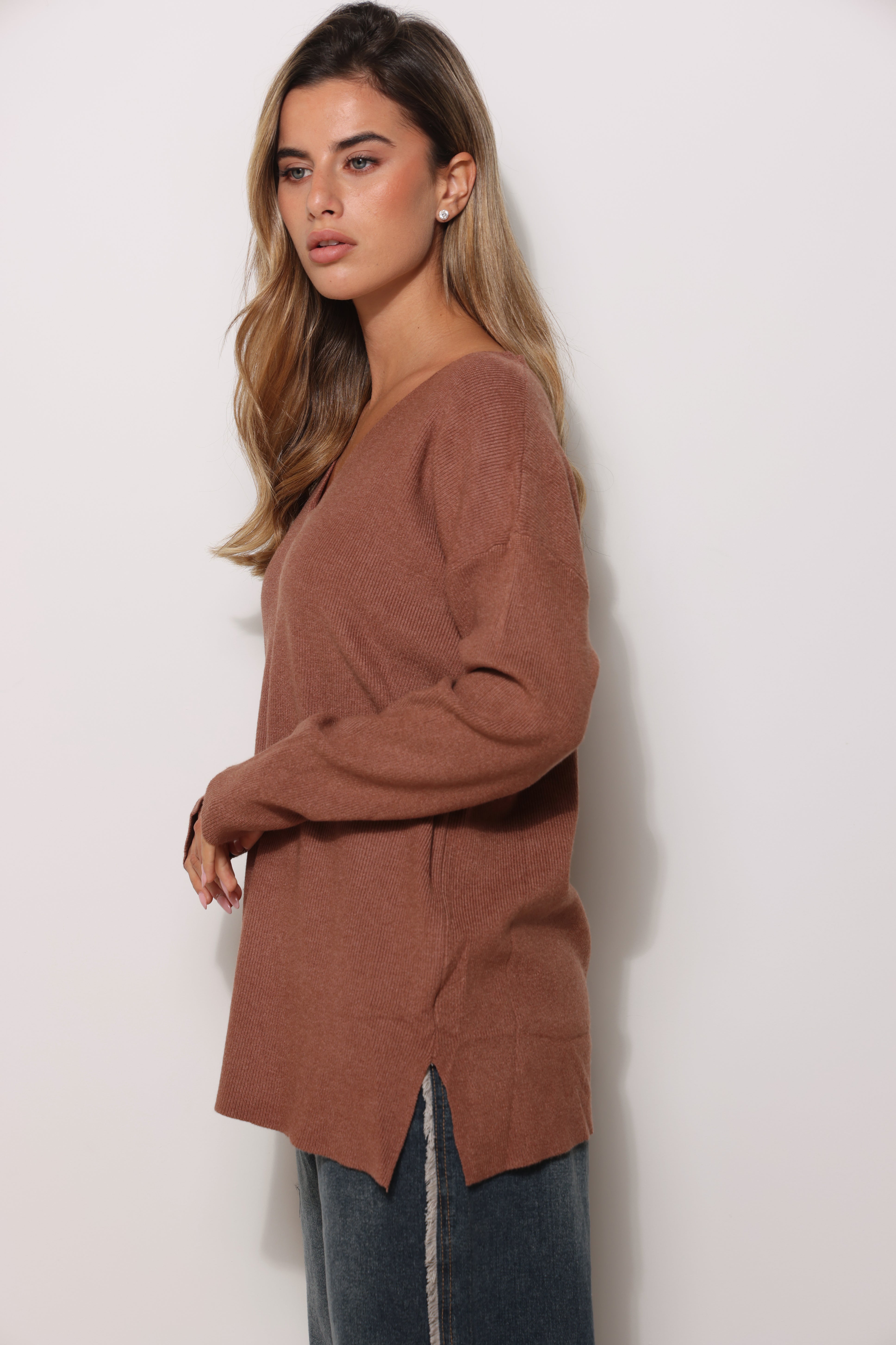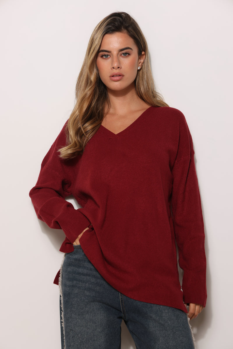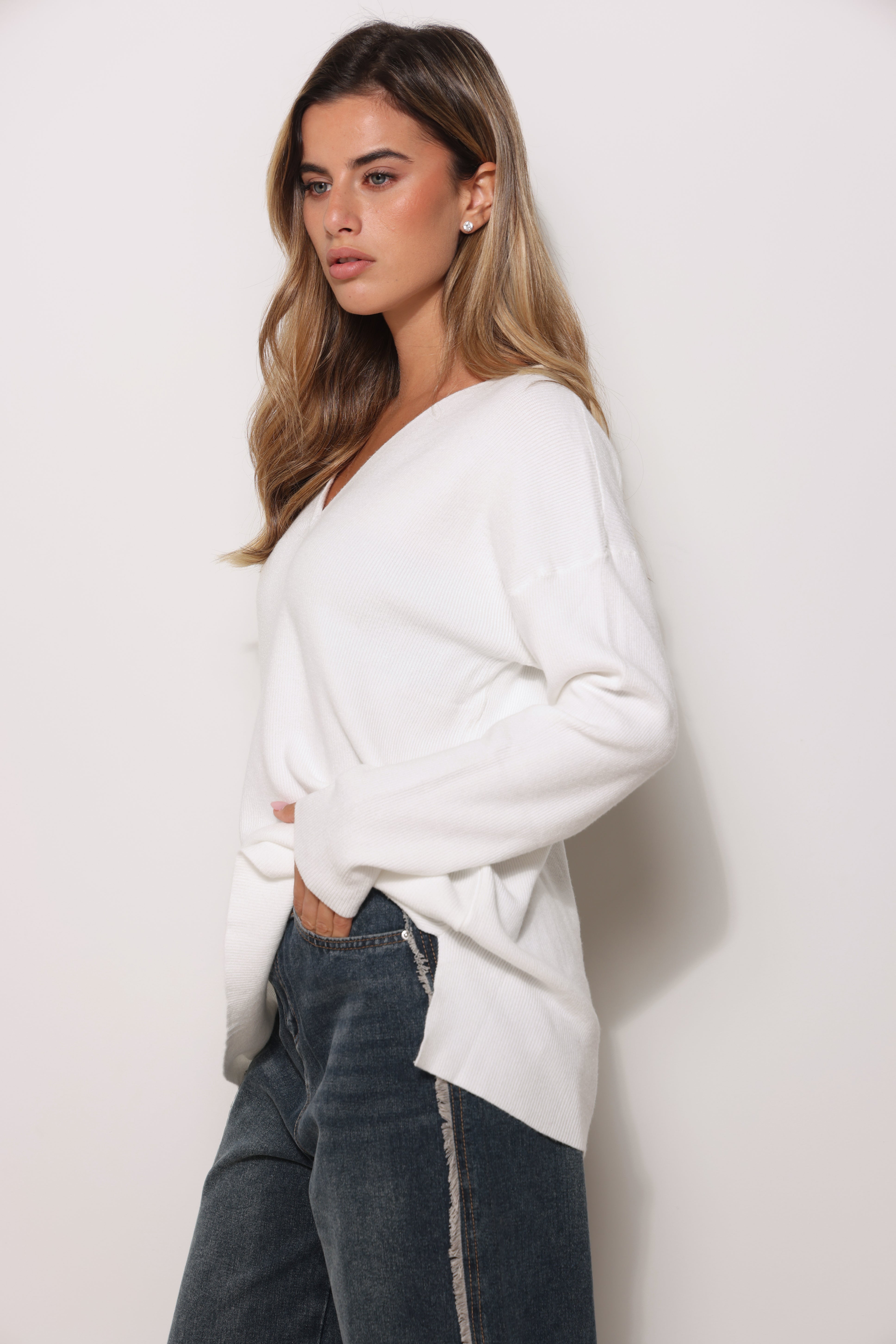 סריג בייסיק במגע רך בגזרת אוברסייז עם מפתח צווארון וי.