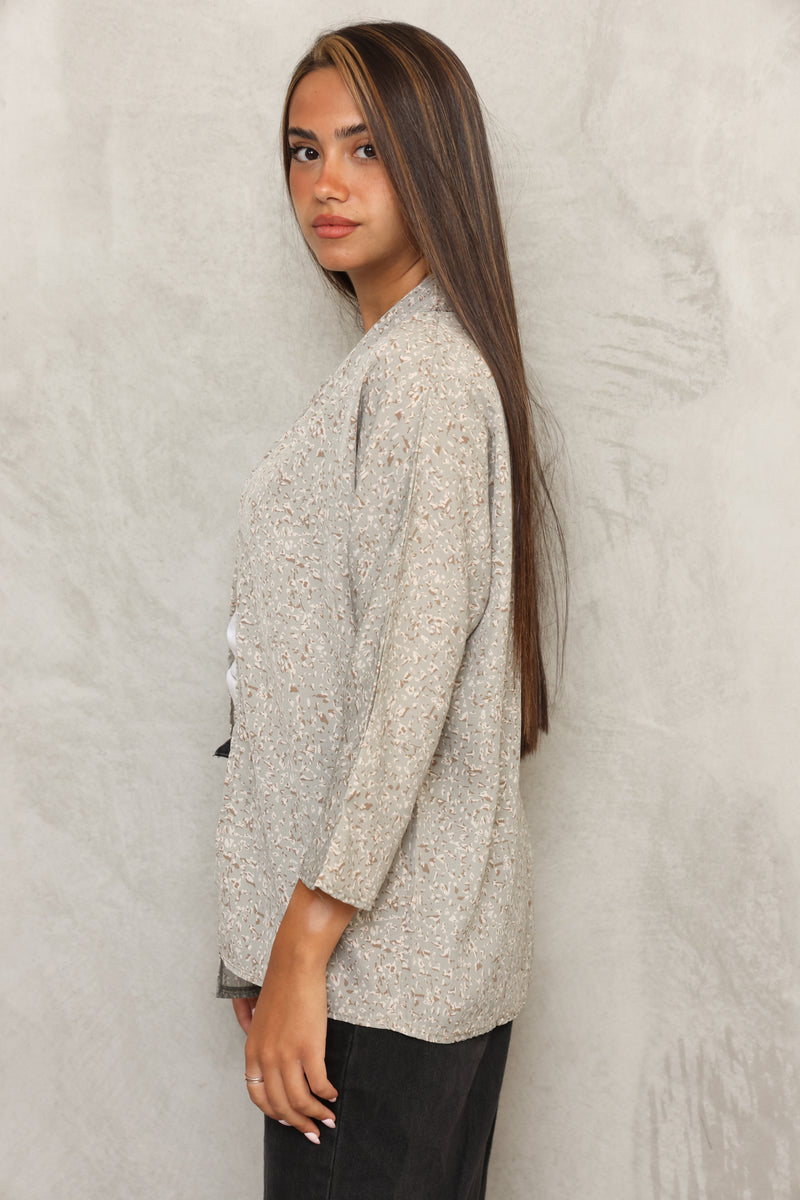 עליונית דקה מבד קרפ מודפס ,סוגרת פינה למשרד, ליום יום או ליציאה חשובה !
