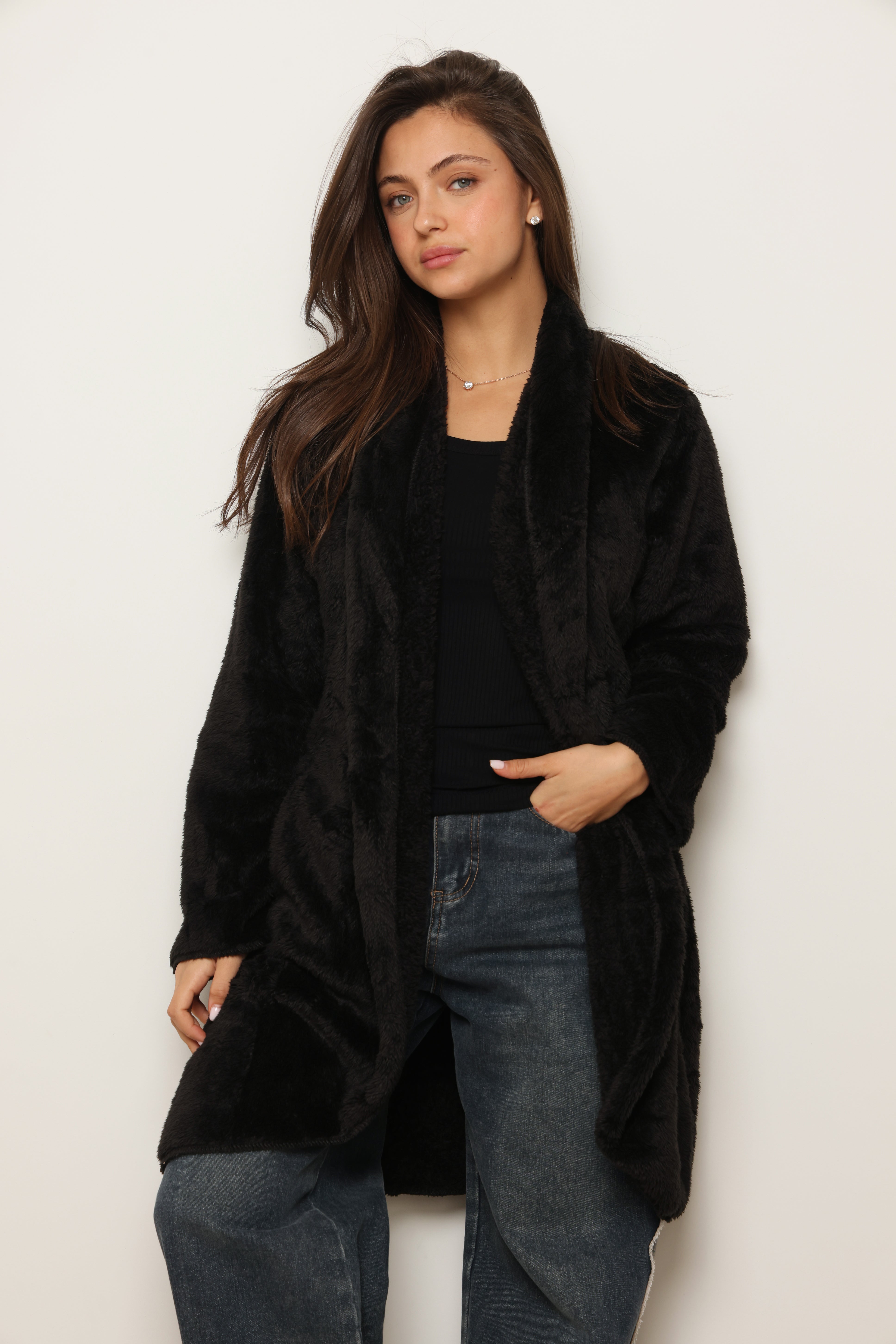 פונצ'ו כירבולית ארוך | שחור