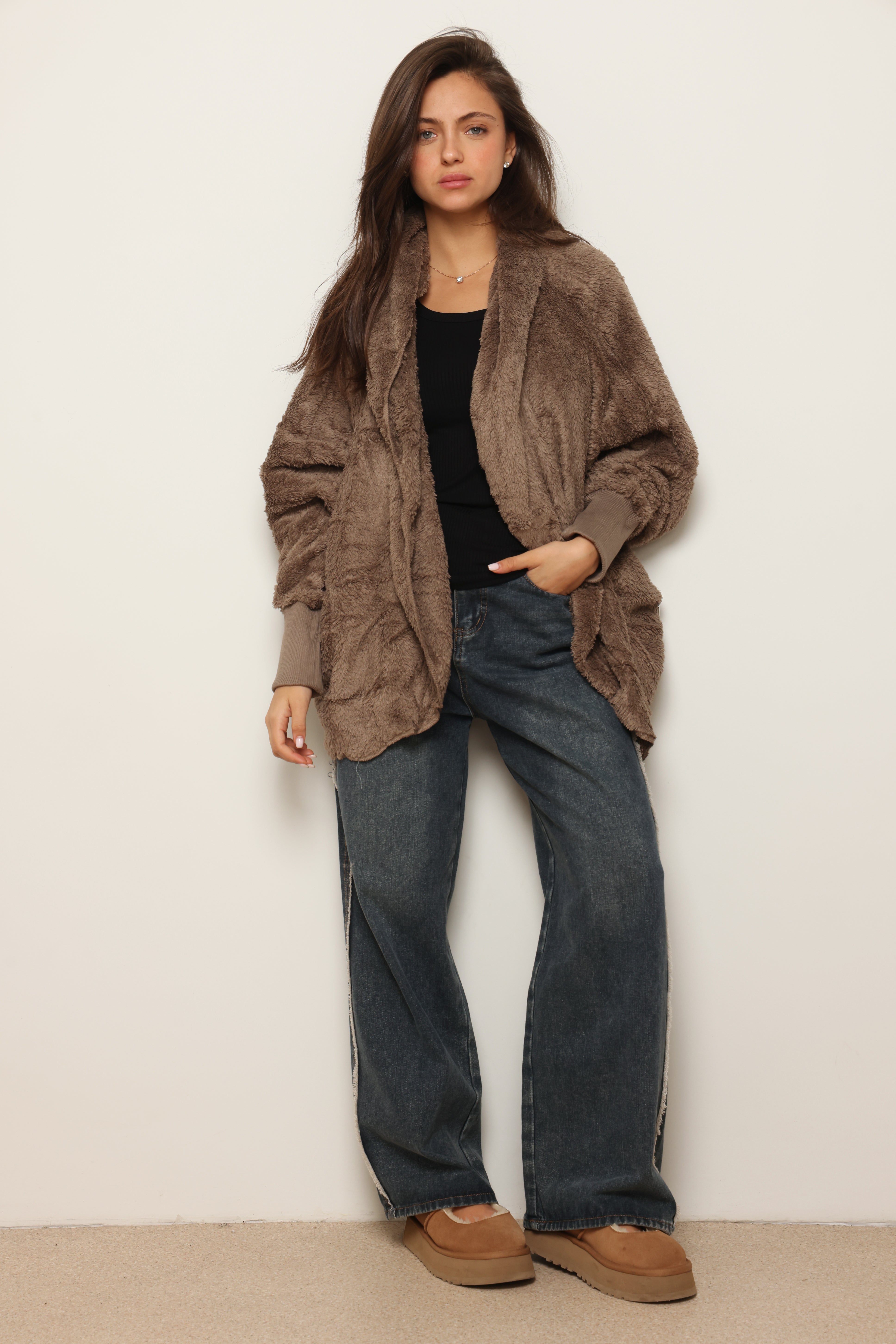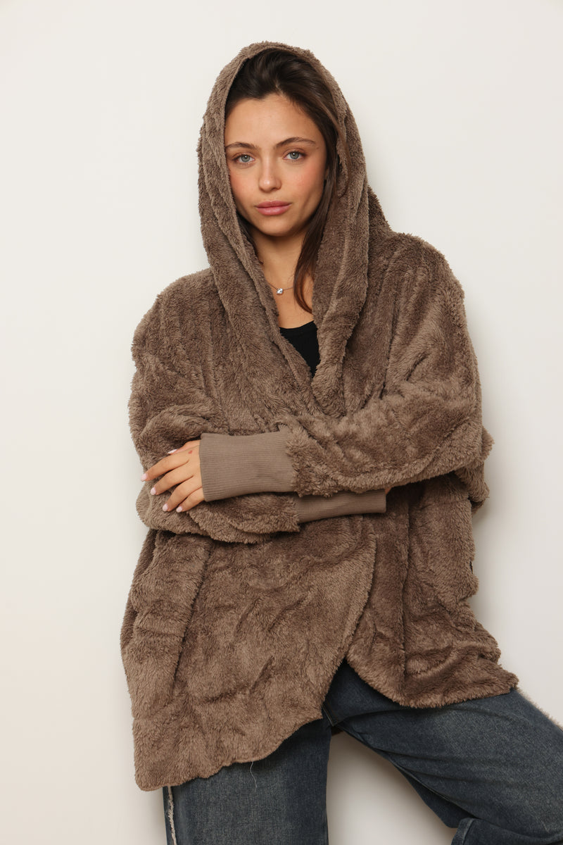 פונצ'ו כירבולית מבד פליז סופר מחמם ונעים, הפריט המושלם להתכרבל בתוכו !