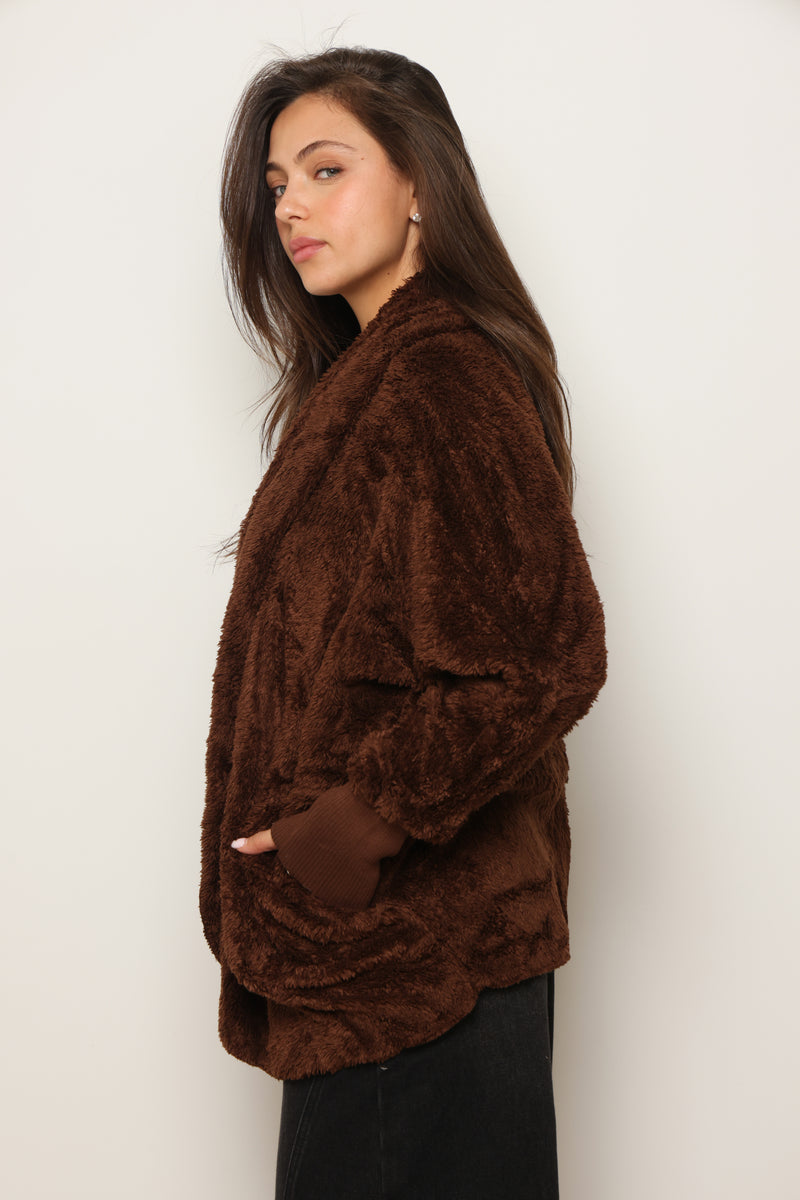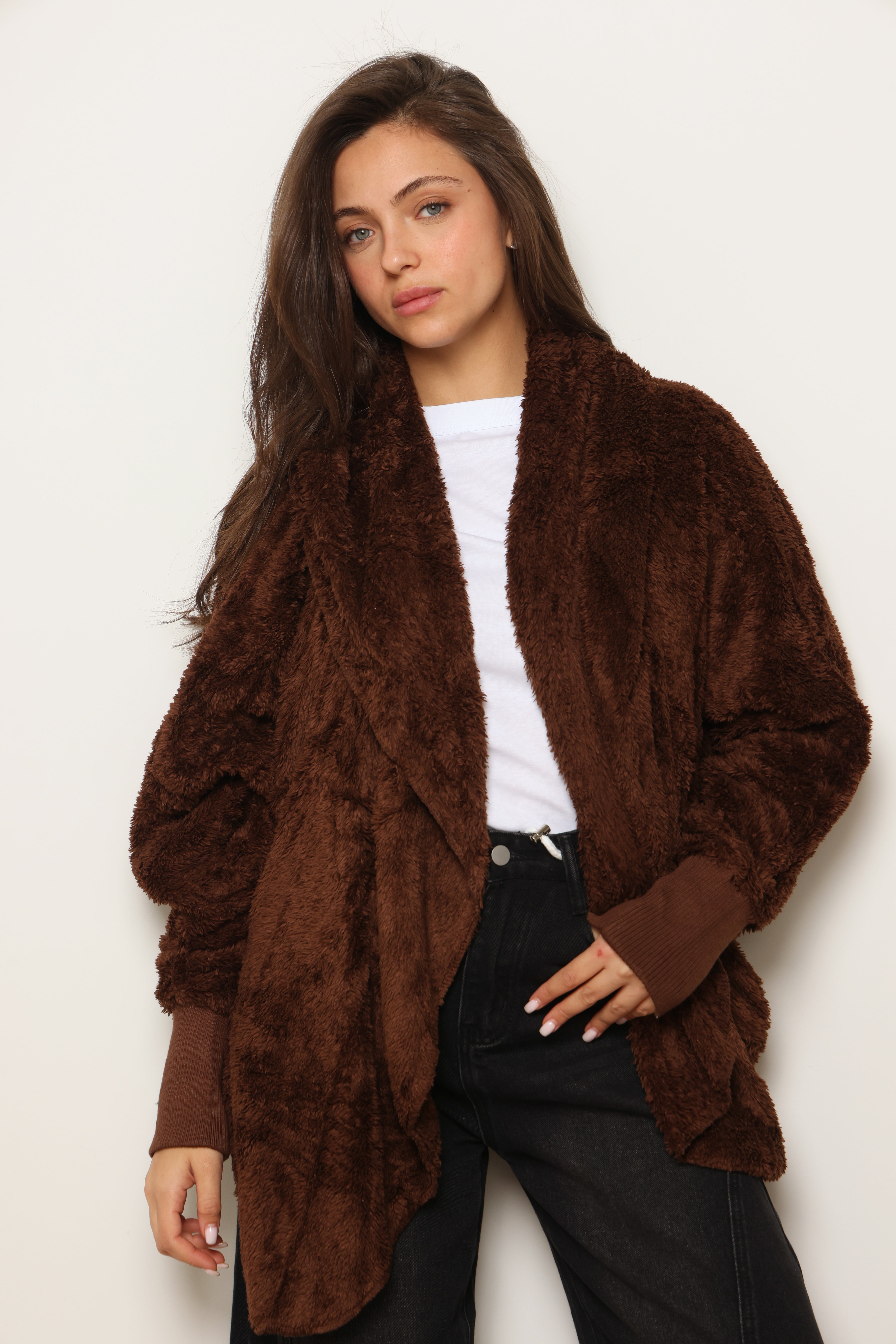 פונצ'ו כירבולית מנג'ט | חום טבק