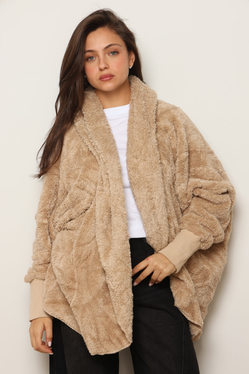 פונצ'ו כירבולית מבד פליז סופר מחמם ונעים, הפריט המושלם להתכרבל בתוכו !